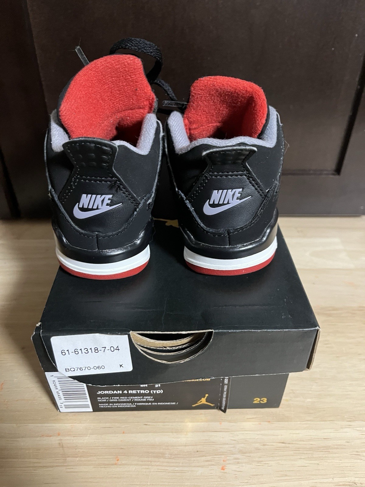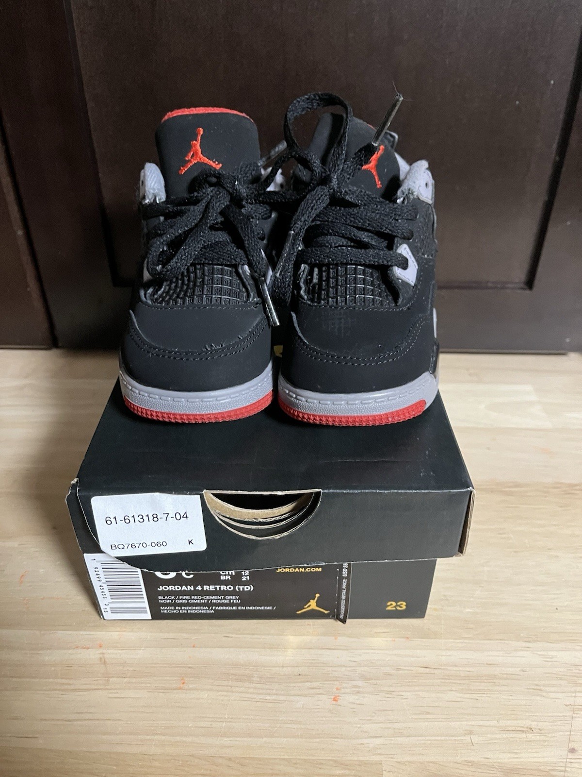 как выглядит Nike Air Jordan 4 Retro Sz 6C TD Black Red Grey BQ7670-060 Kid Toddlers фото