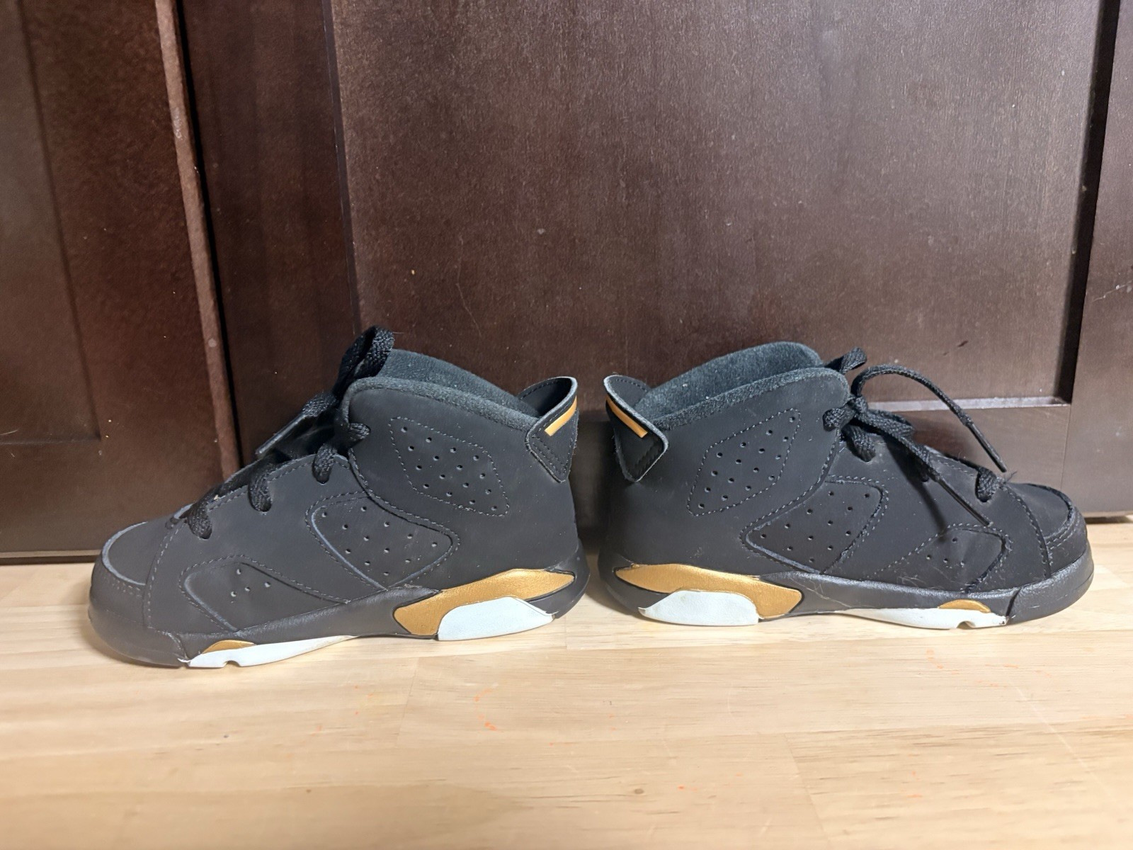 как выглядит Nike Air Jordan 6 Retro TD DMP Black Metallic Gold CT4966-007 Toddler Size 8C фото
