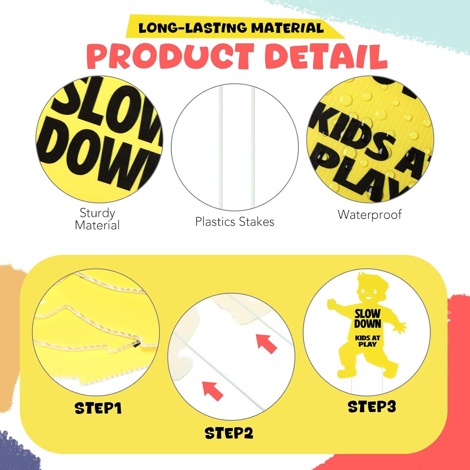 4 Pack Slow Down Kids at Play Signs Street Safety Sign 16 x 12 Inches Plastic Ch