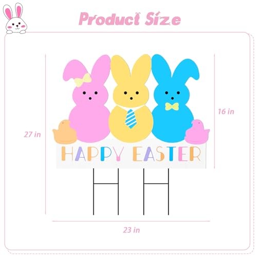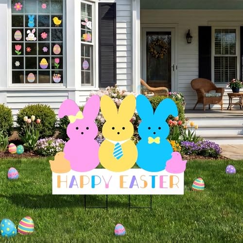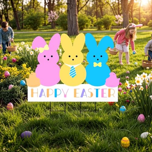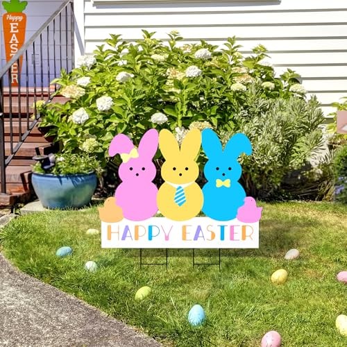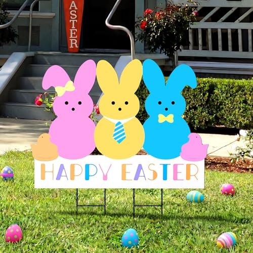 Easter Decorations Outdoor Yard Signs: Large Metal Happy Easter Peep Bunny