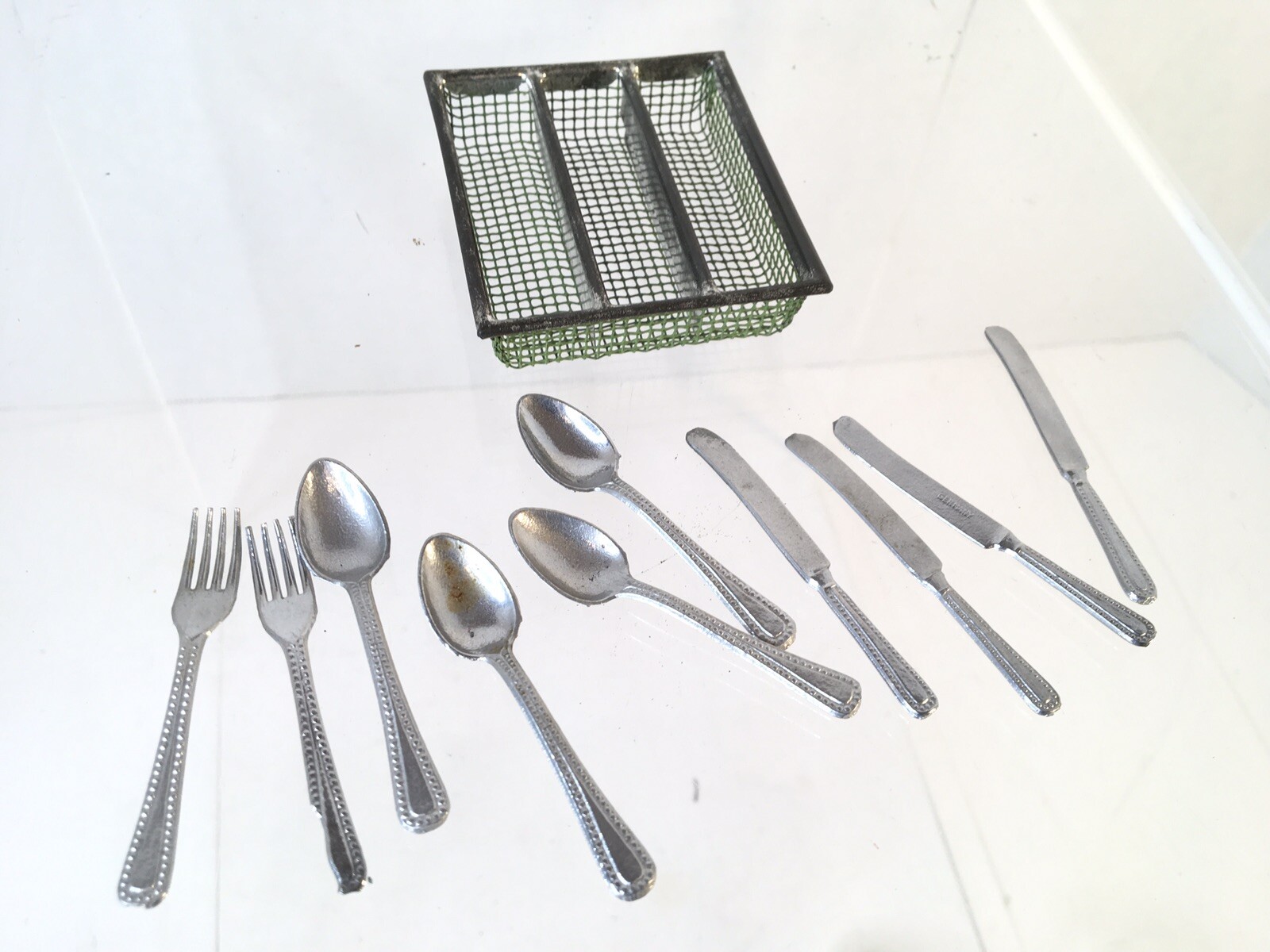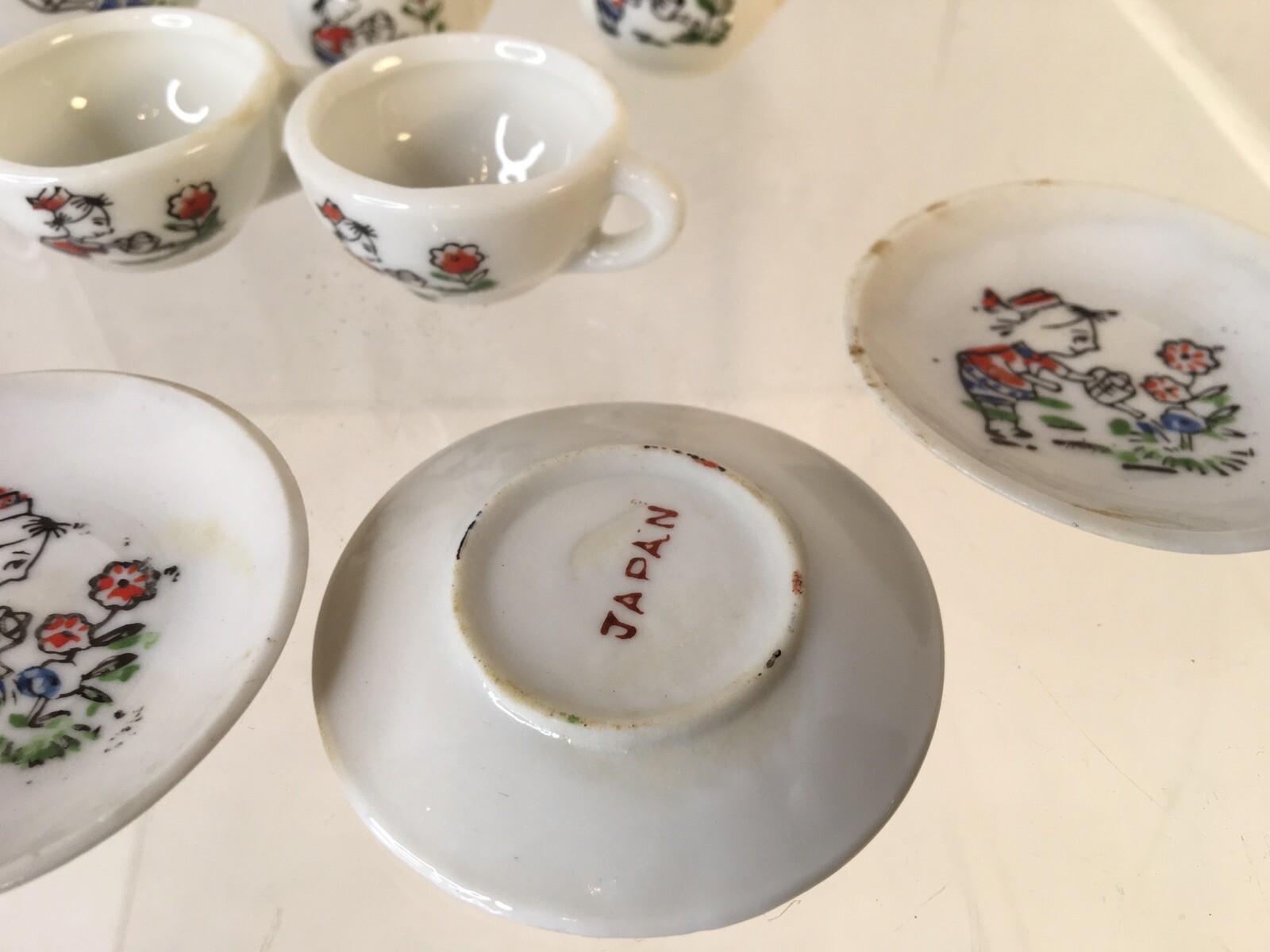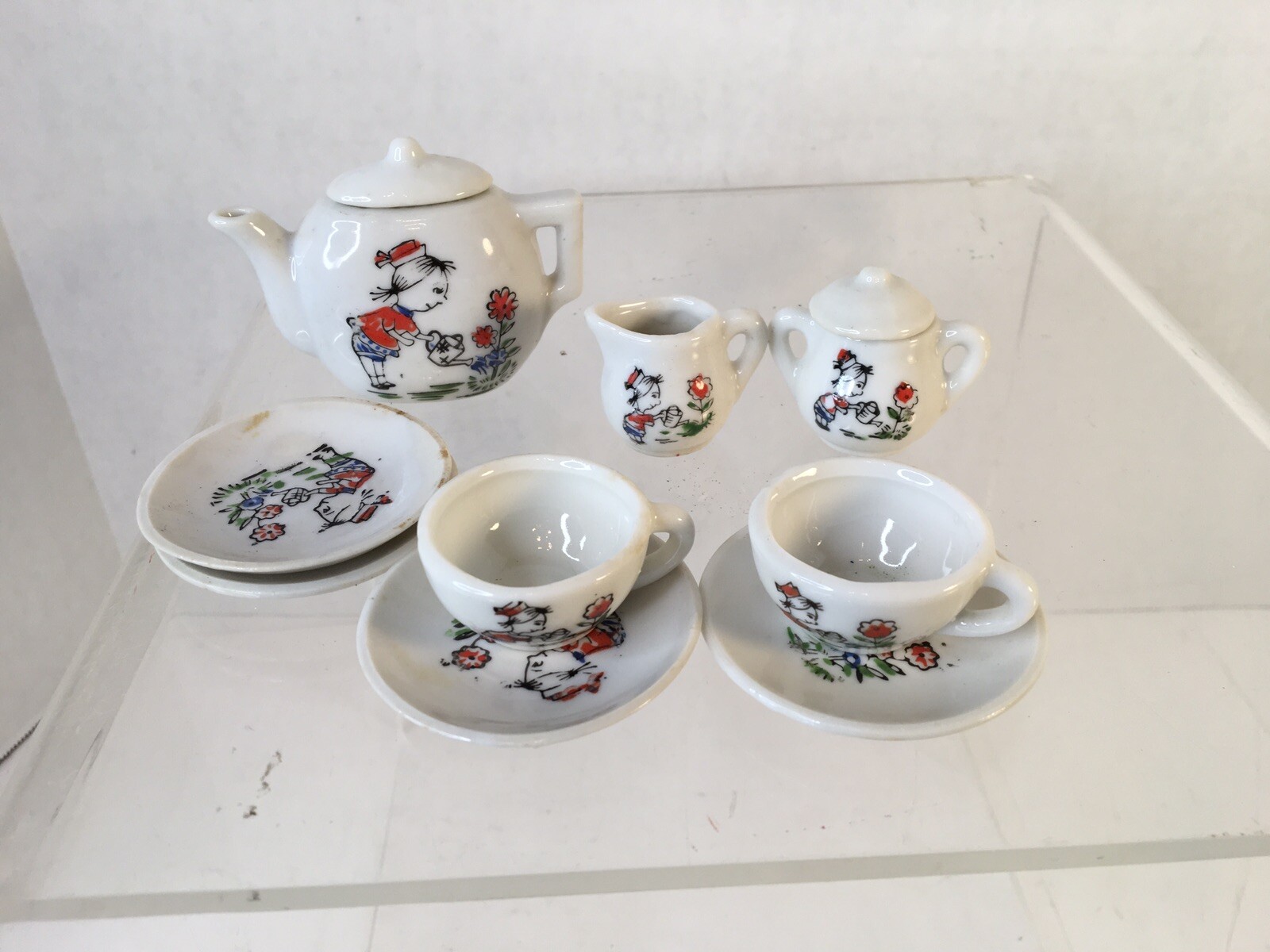 Vtg MCM Mini Childs Tea Set Tea Party Ceramic 29 Pc Doll Dishes Flatware Germany