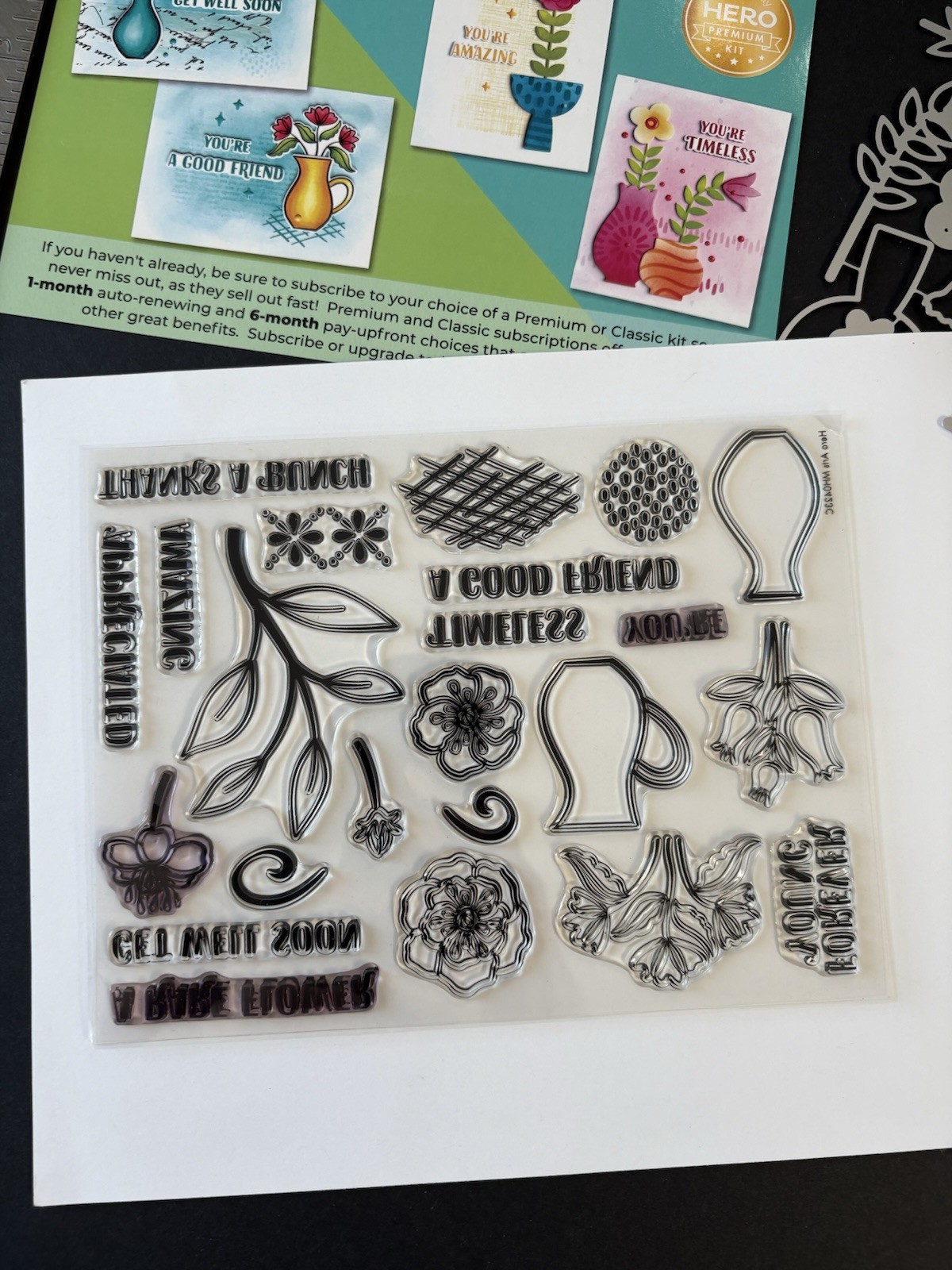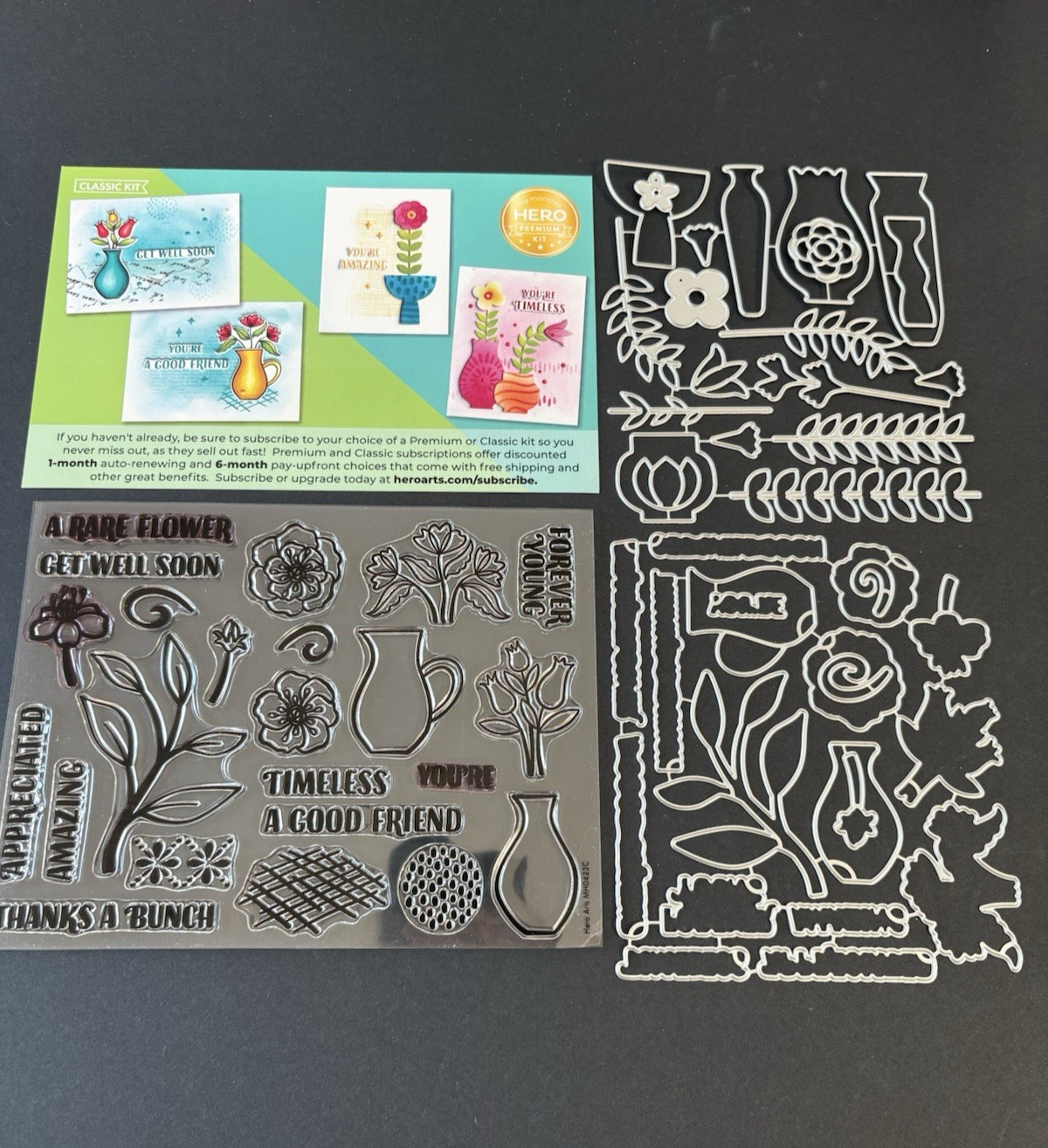 как выглядит Hero Arts Flower Vase Flowers My Monthly Kit UM Clear Stamps Dies Apr 2023 фото
