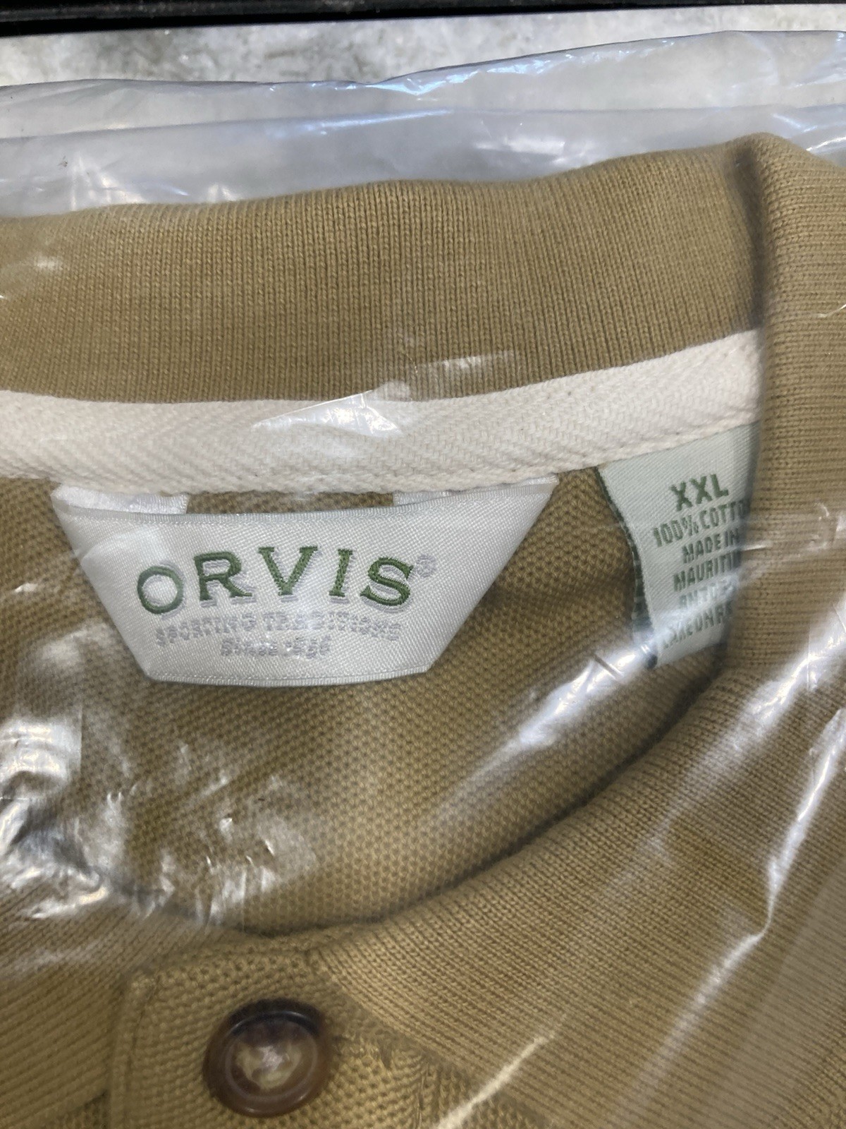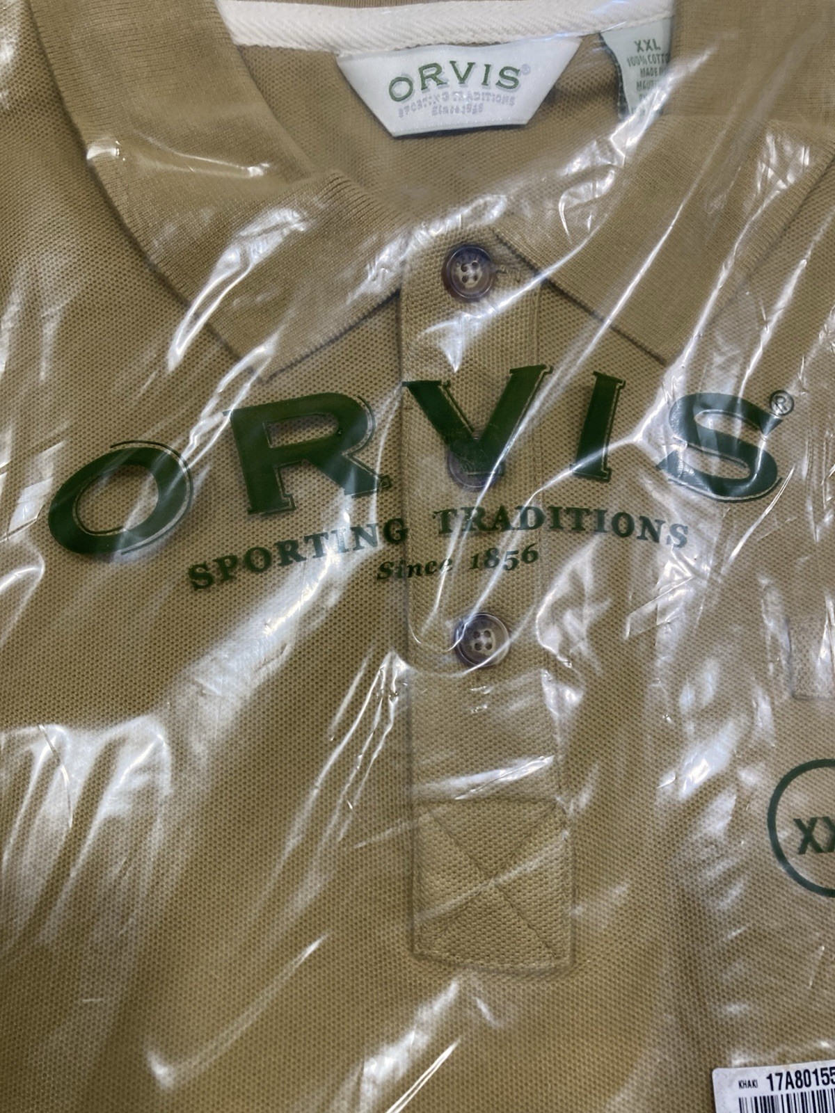 Orvis Mens XXL Polo Khaki Ran Short Sleeve Shirt New Unopened Package Orvis 2XL