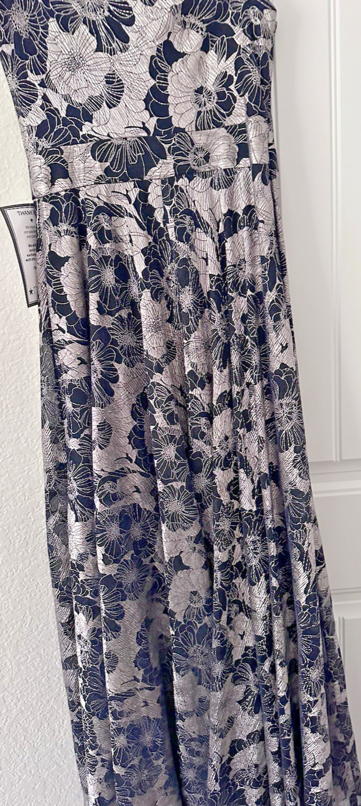 как выглядит Betsy Adam Womens Metallic-Floral One-Shoulder Gown Formal Dress Navy Silver 2 фото