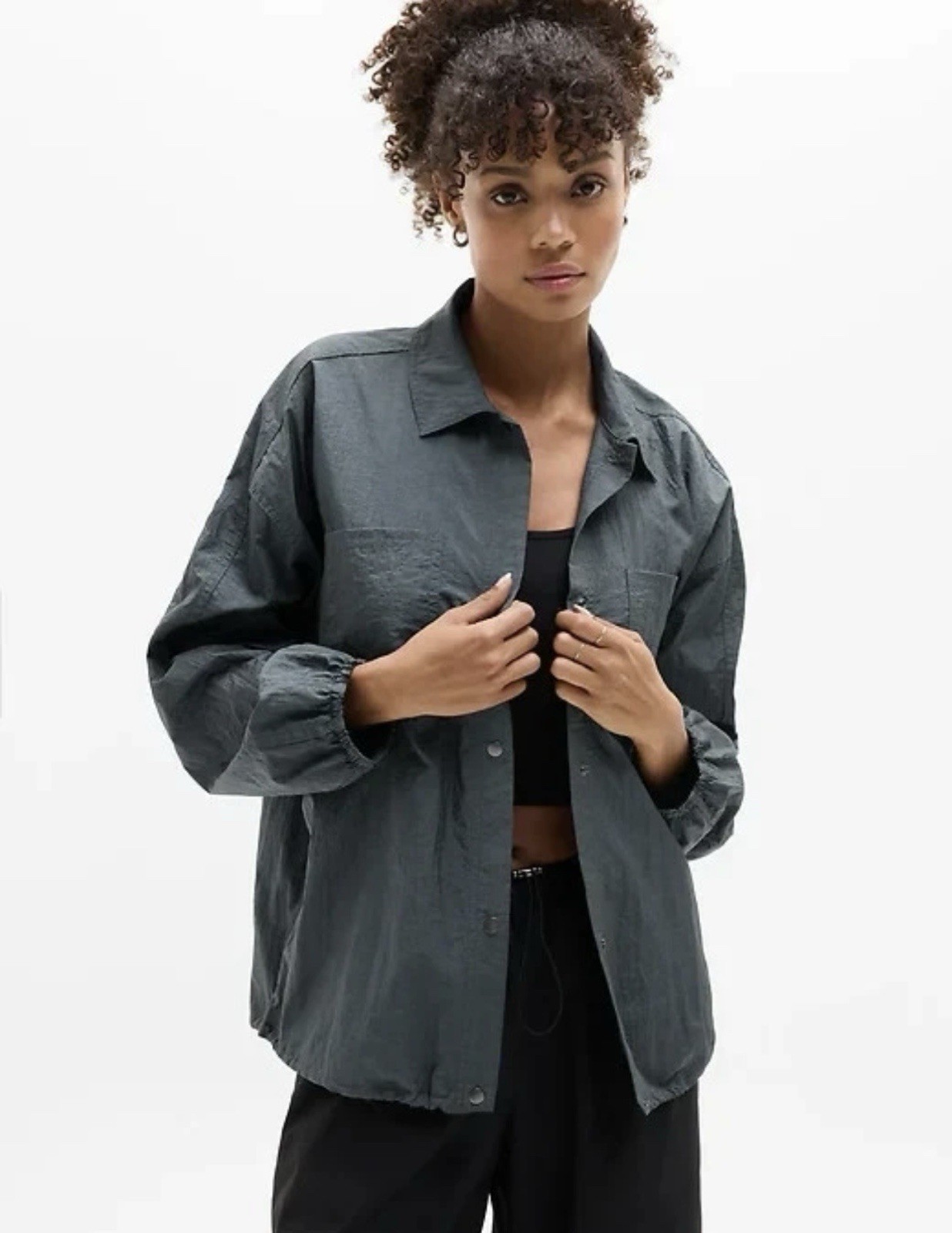 Athleta Relaxed Lightweight Lunar Sheen Shirt Jacket Dark Rinse NWOT Size XXS