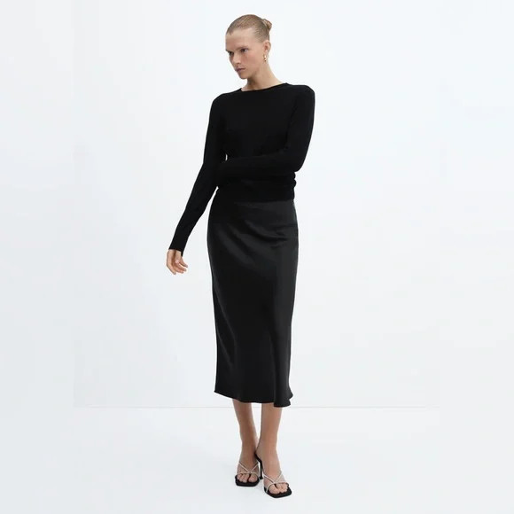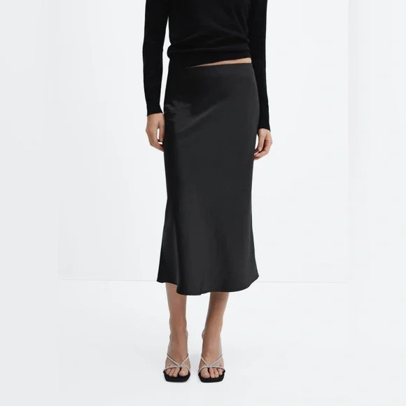 Mango MNG Women's MIA Black Satin Slip Midi Skirt size XS