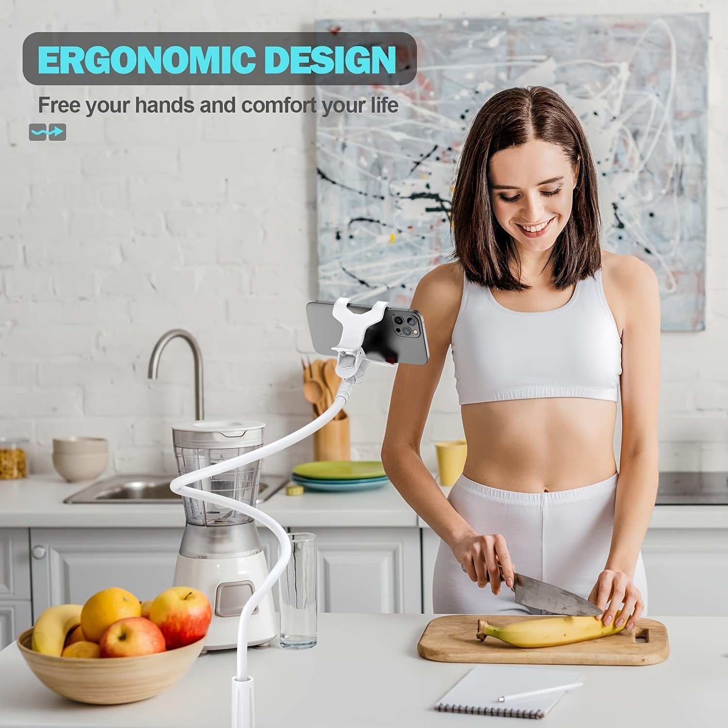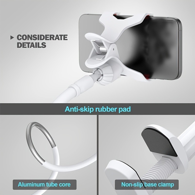 White Gooseneck Tablet Holder, Flexible Adjustable Mobile Phone Stand for Bed