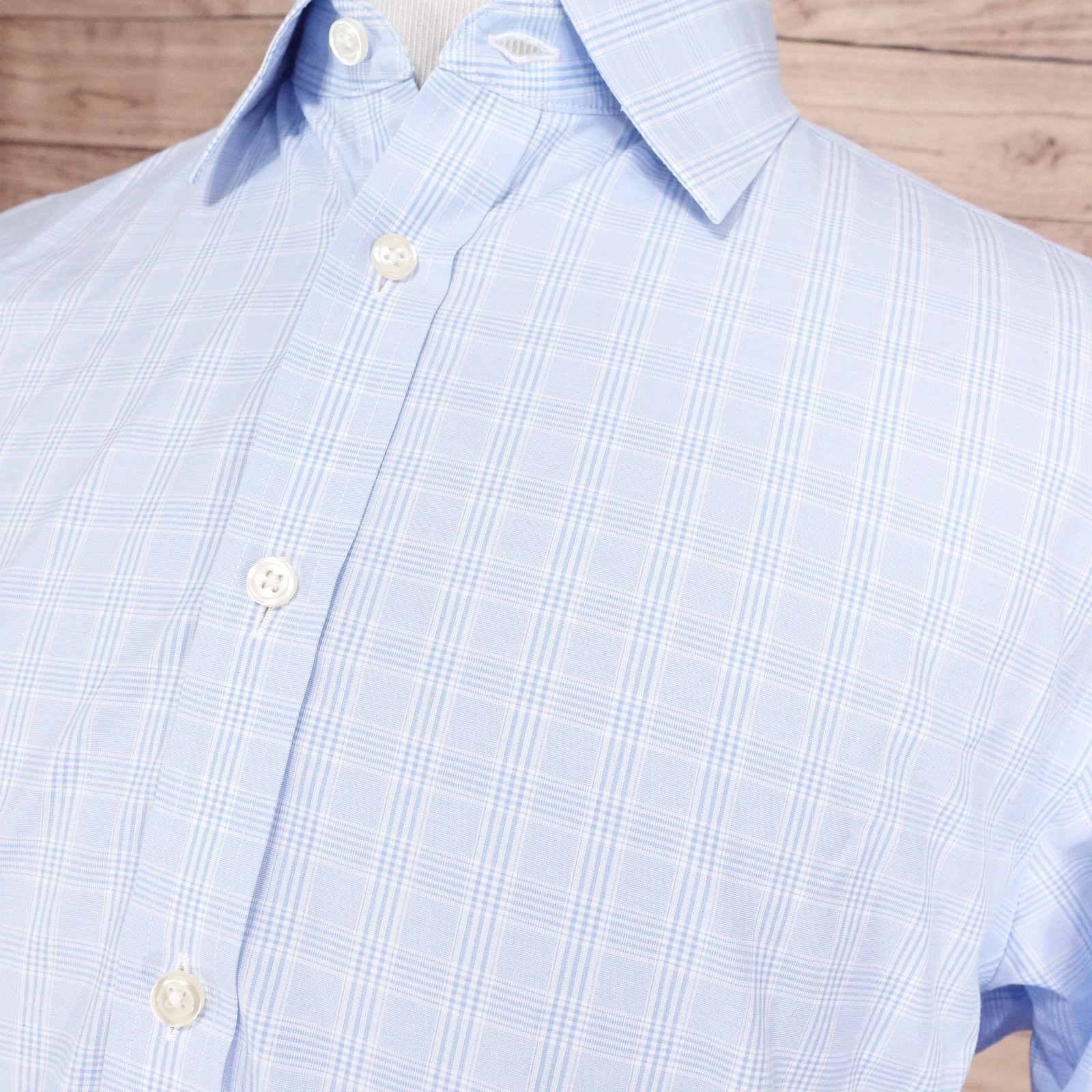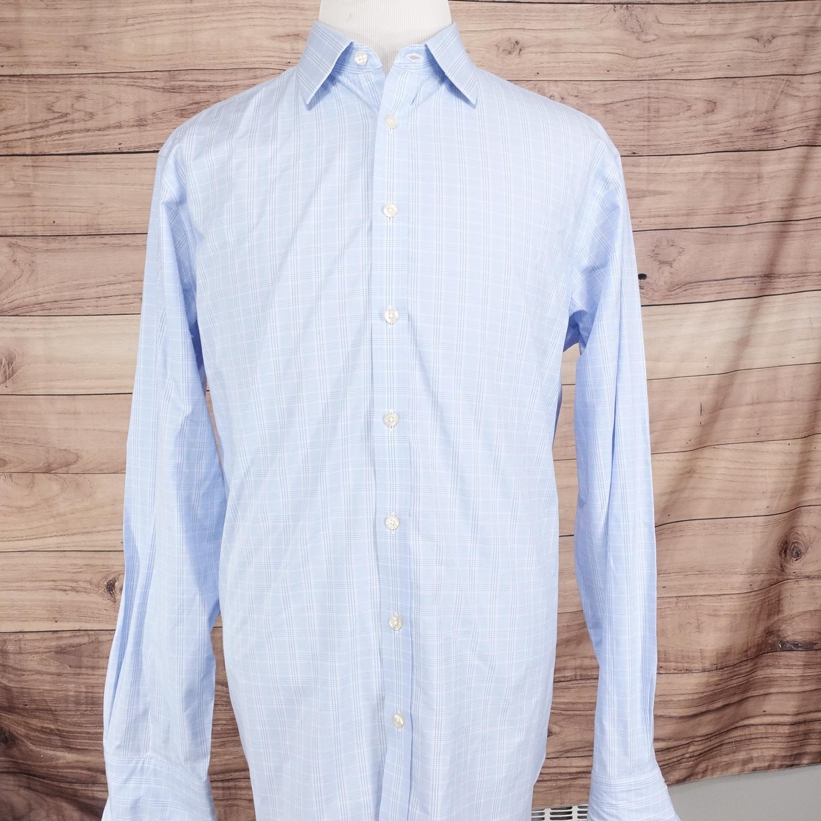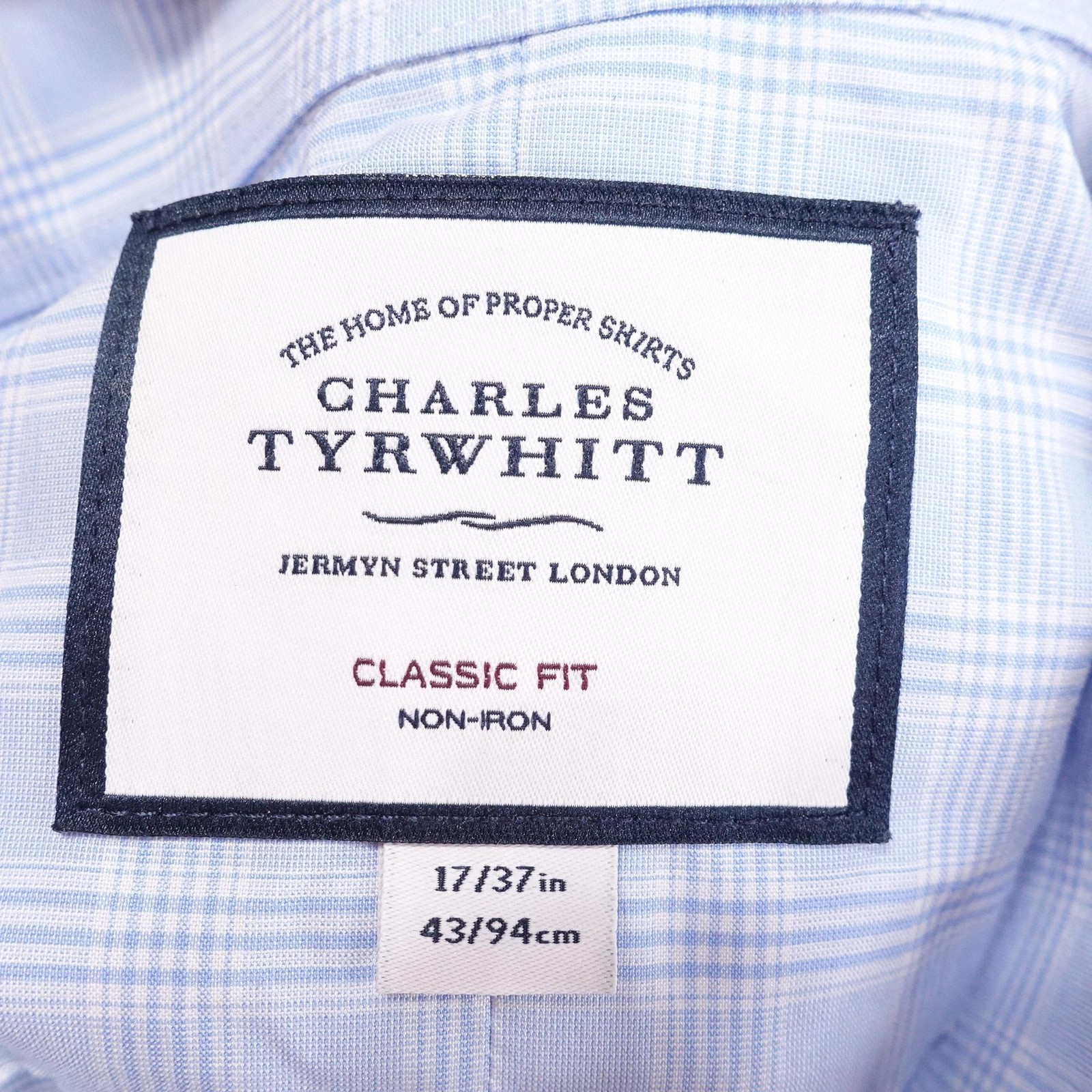 как выглядит Charles Tyrwhitt Dress Shirt 17 37 Blue Check Classic Fit Non Iron French Cuff фото