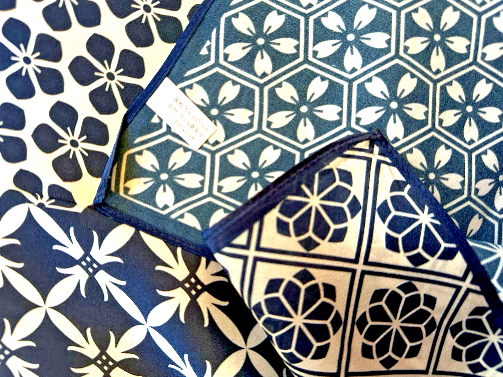 21 X21Navy Art Flowers Print Pure Mulberry Satin Silk 12momme Scarf 53x53cm6-7