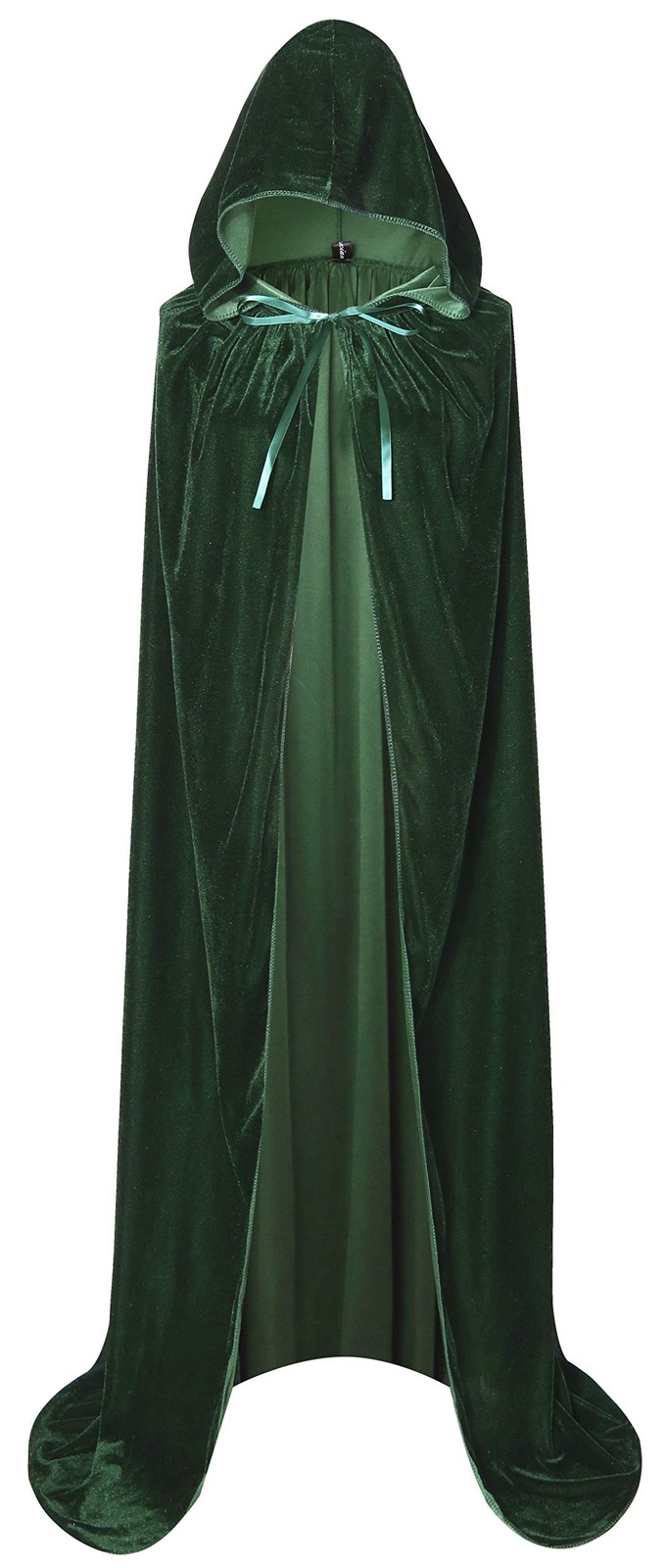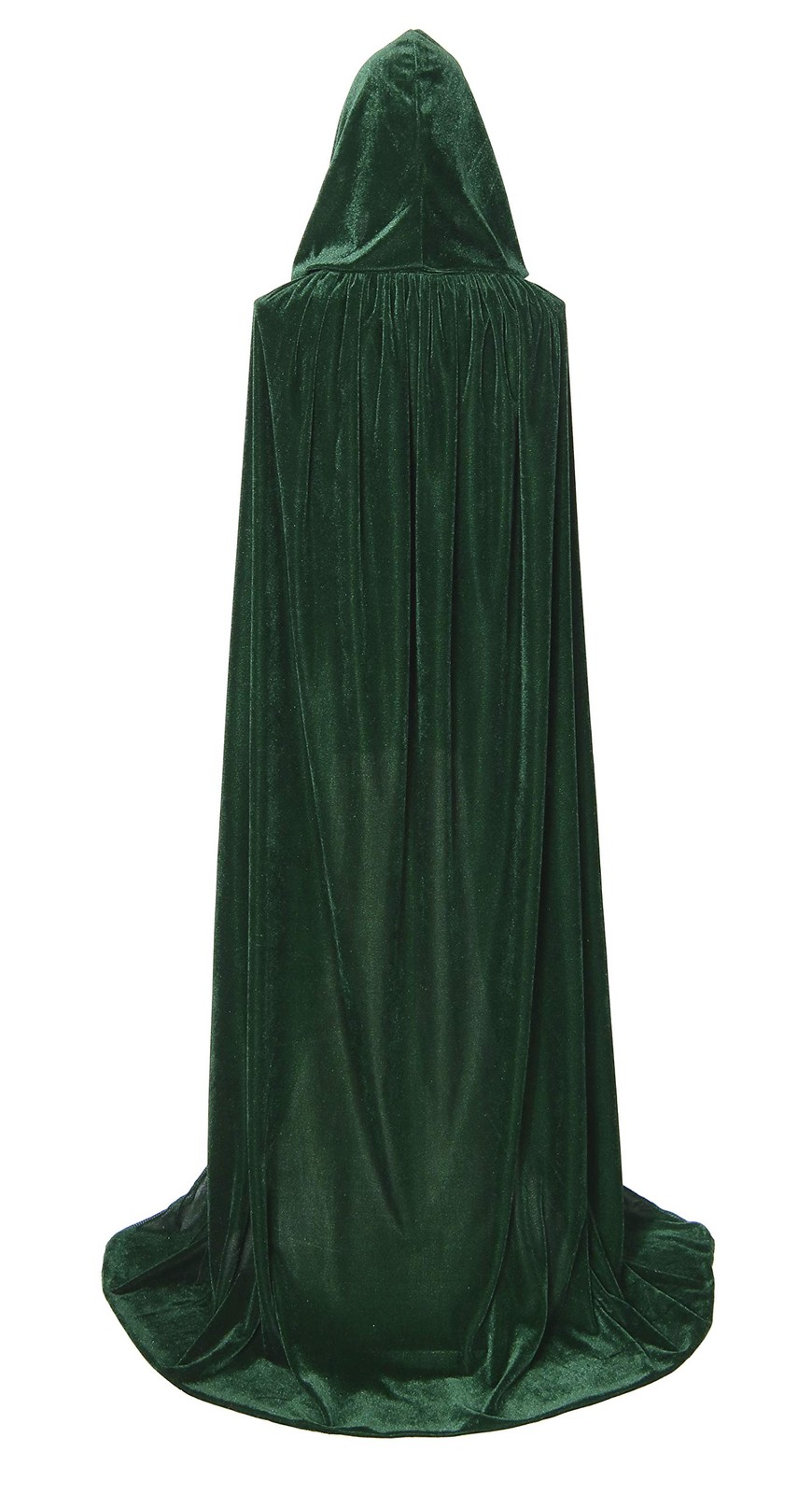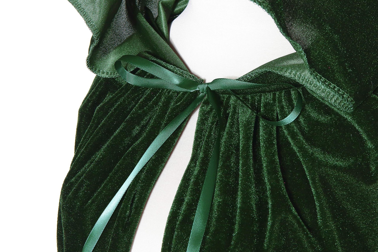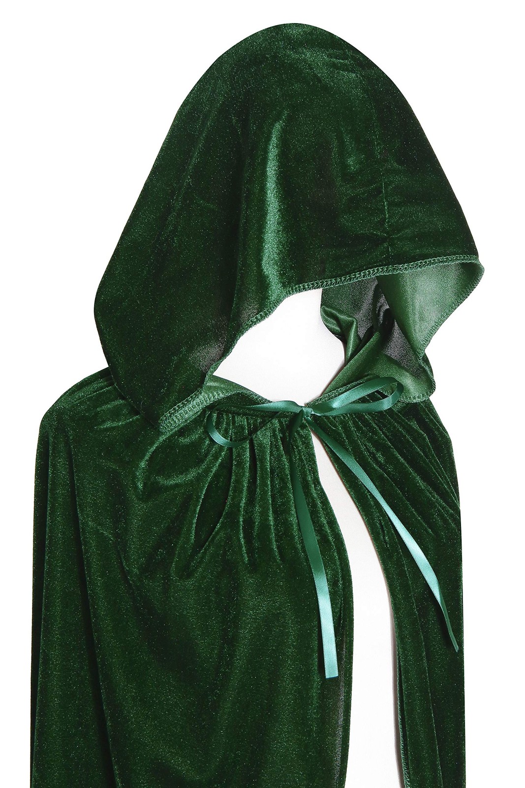 BIGXIAN Long Hooded Cloak Velvet Cape Witch Costume Large, Dark Green
