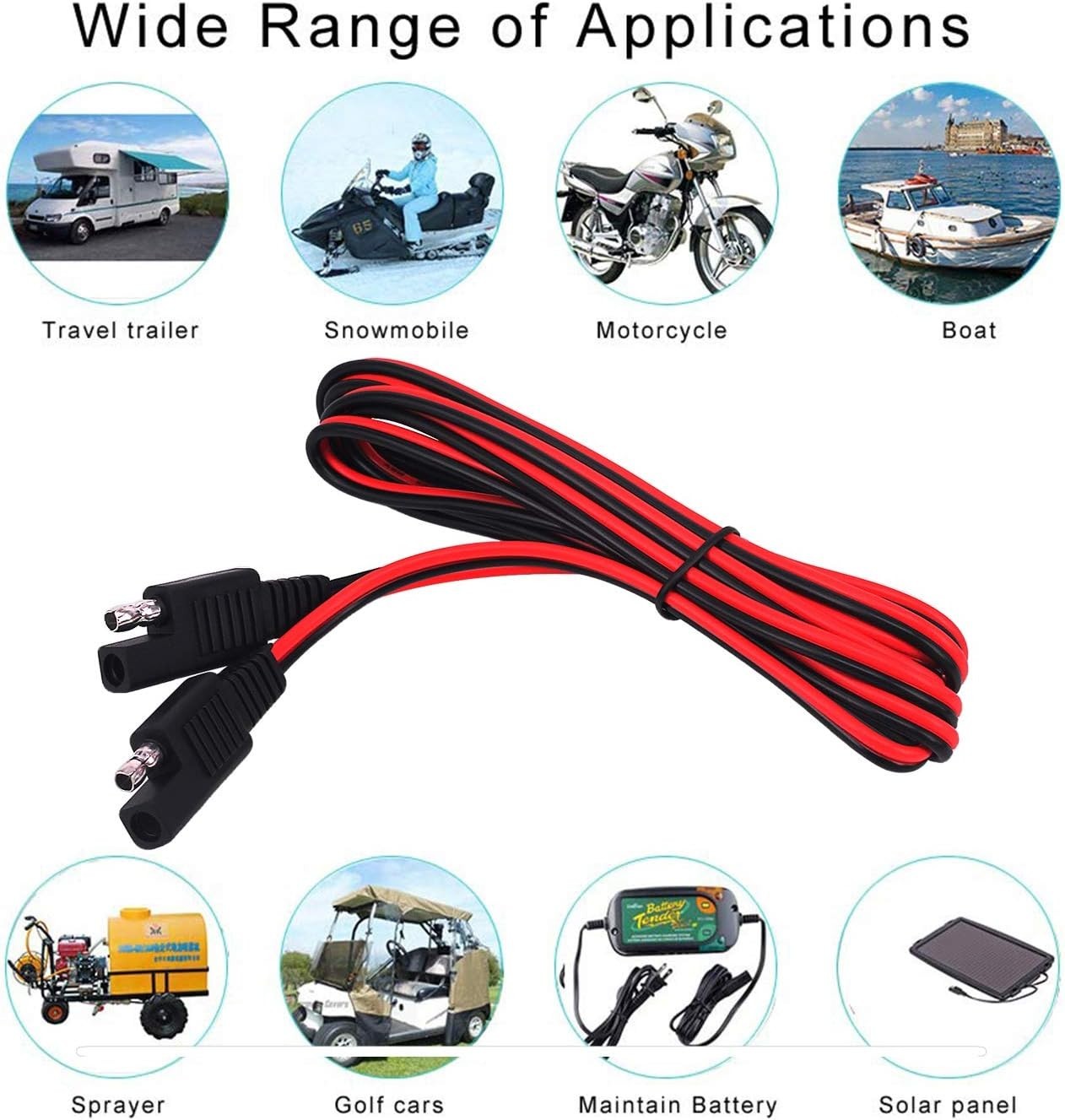 18AWG SAE Extension Cord, 2 Pin Cable 12V-24V Quick Disconnect DC Power Autom