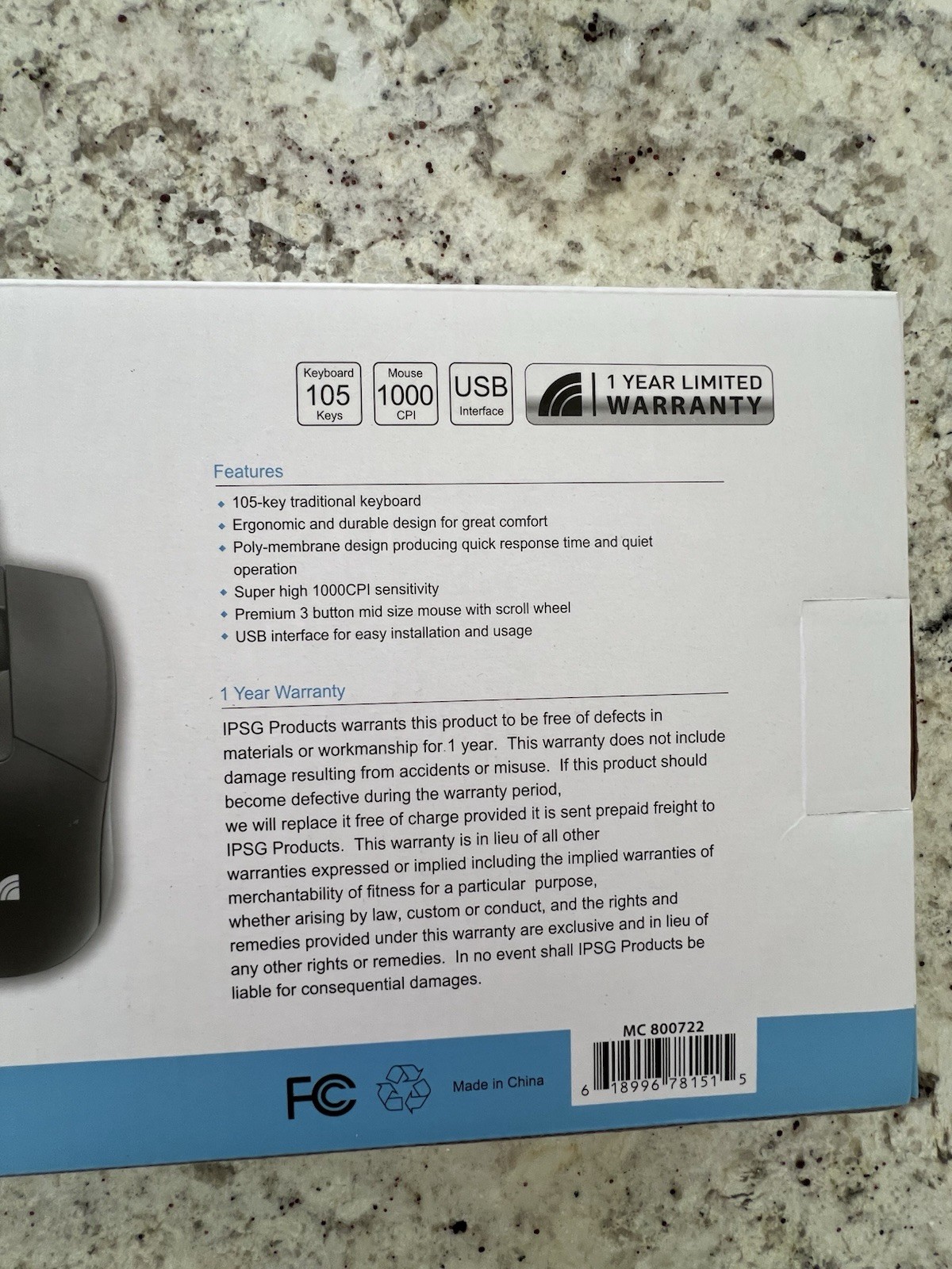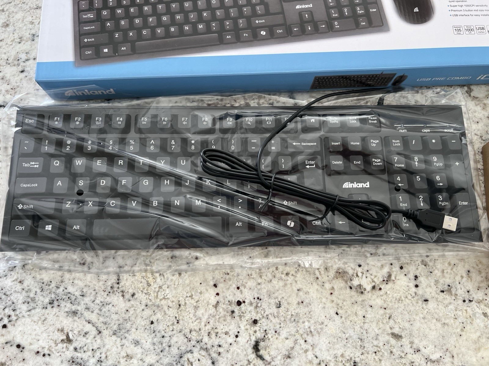 Inland IC210 USB Keyboard Mouse Combo New In Box Black NR