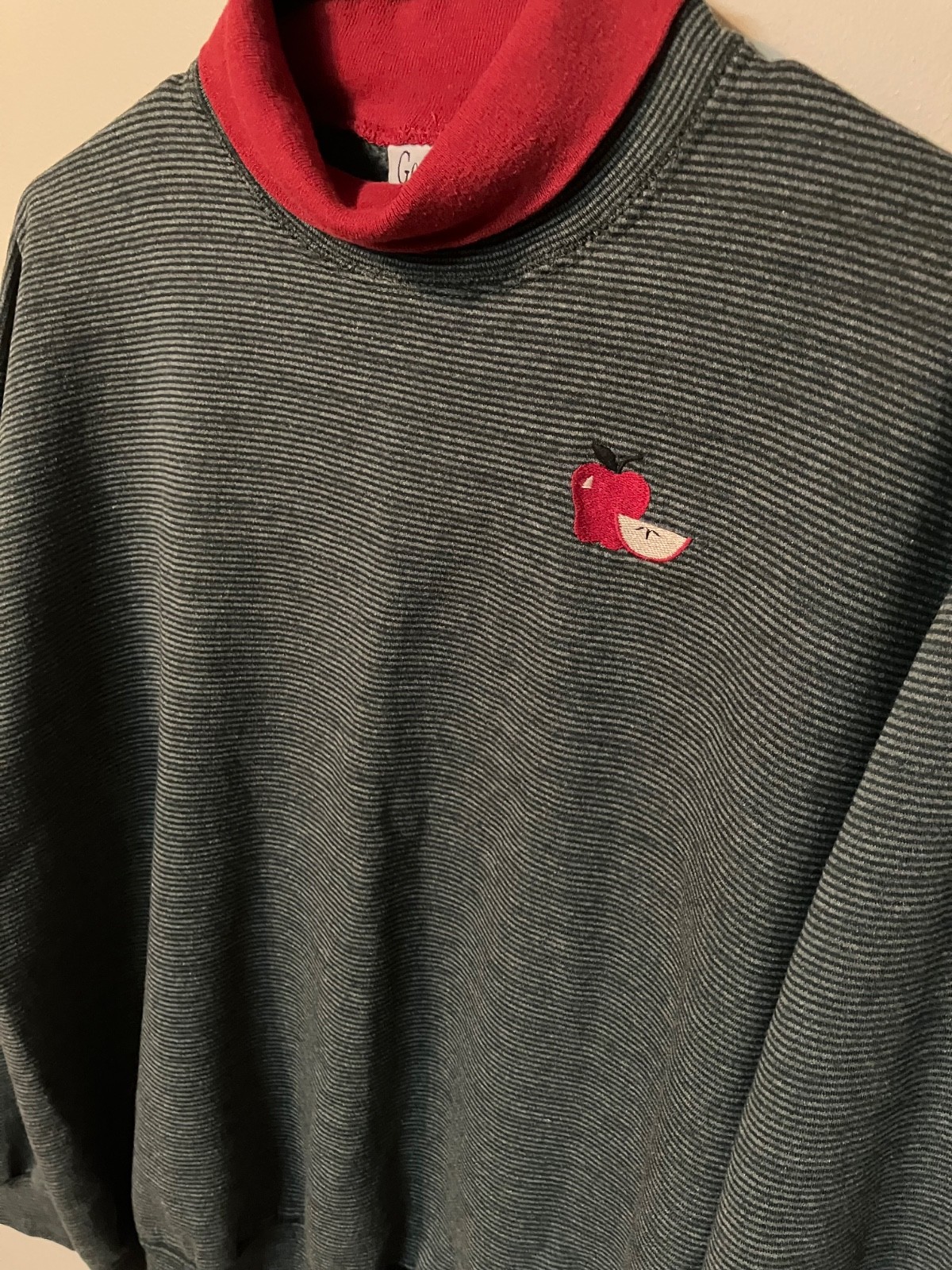 Vintage 90s Gopher Sport Sweatshirt Grandma Apple Mock Turtle Neck Medium Green