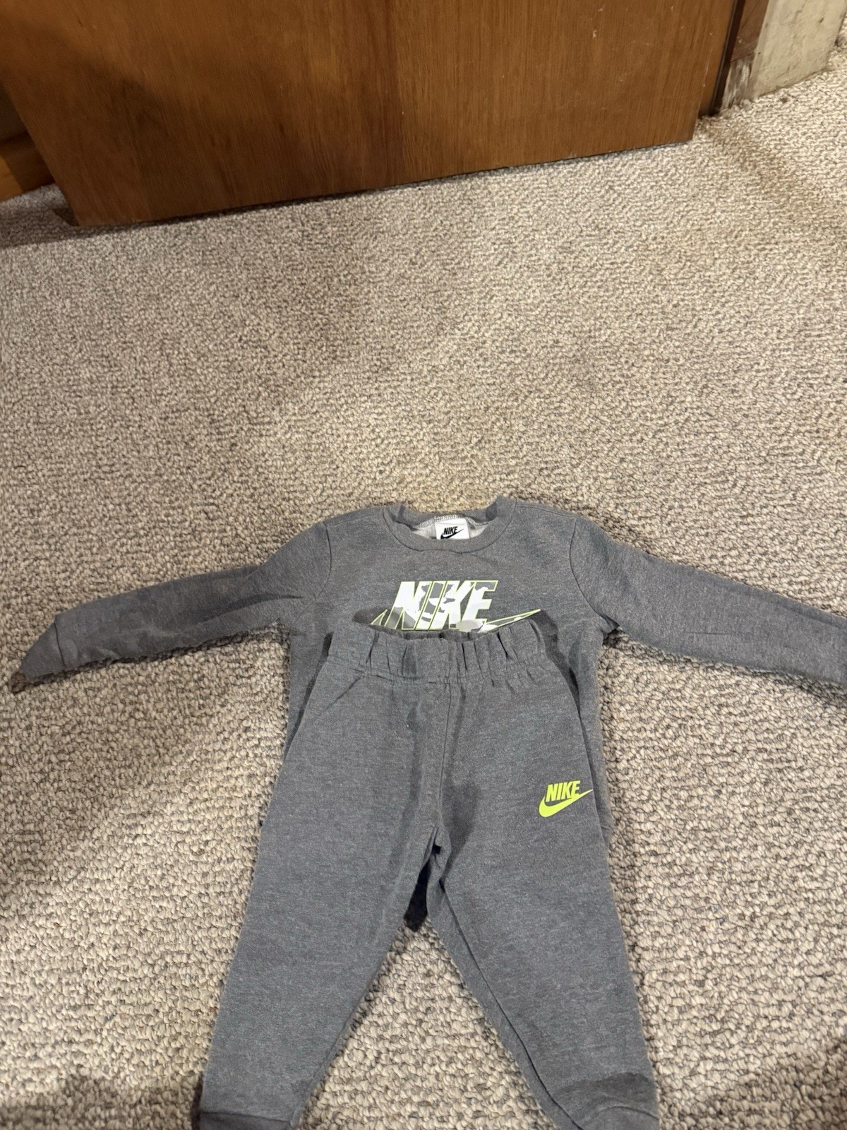 как выглядит Nike 2T Toddler Gray Logo Sweatshirt Pants Set Long Sleeve Fall Winter фото