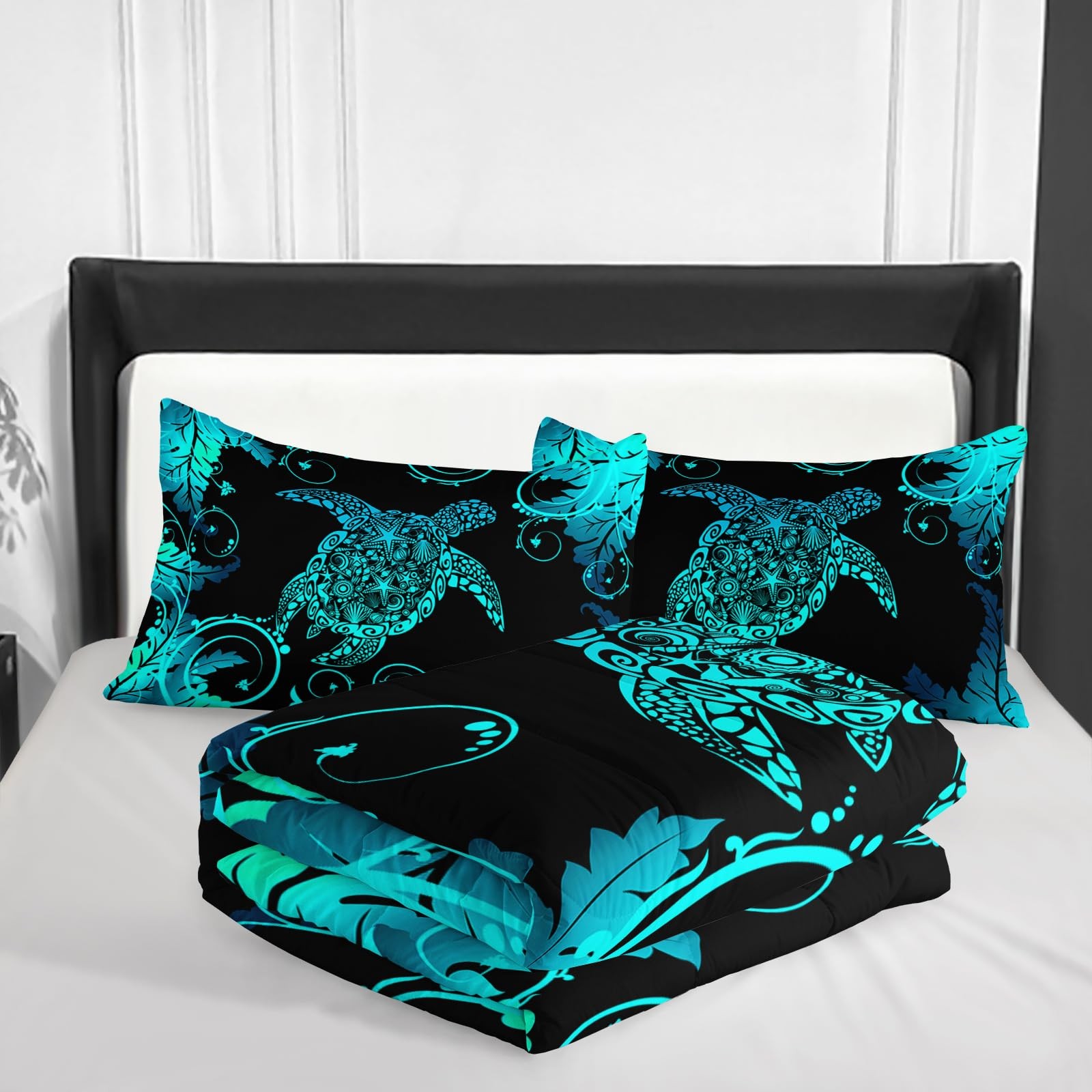 Blue and Black Sea Turtles Comforter Sets Queen Size Bedding Sets for ,Ocea...