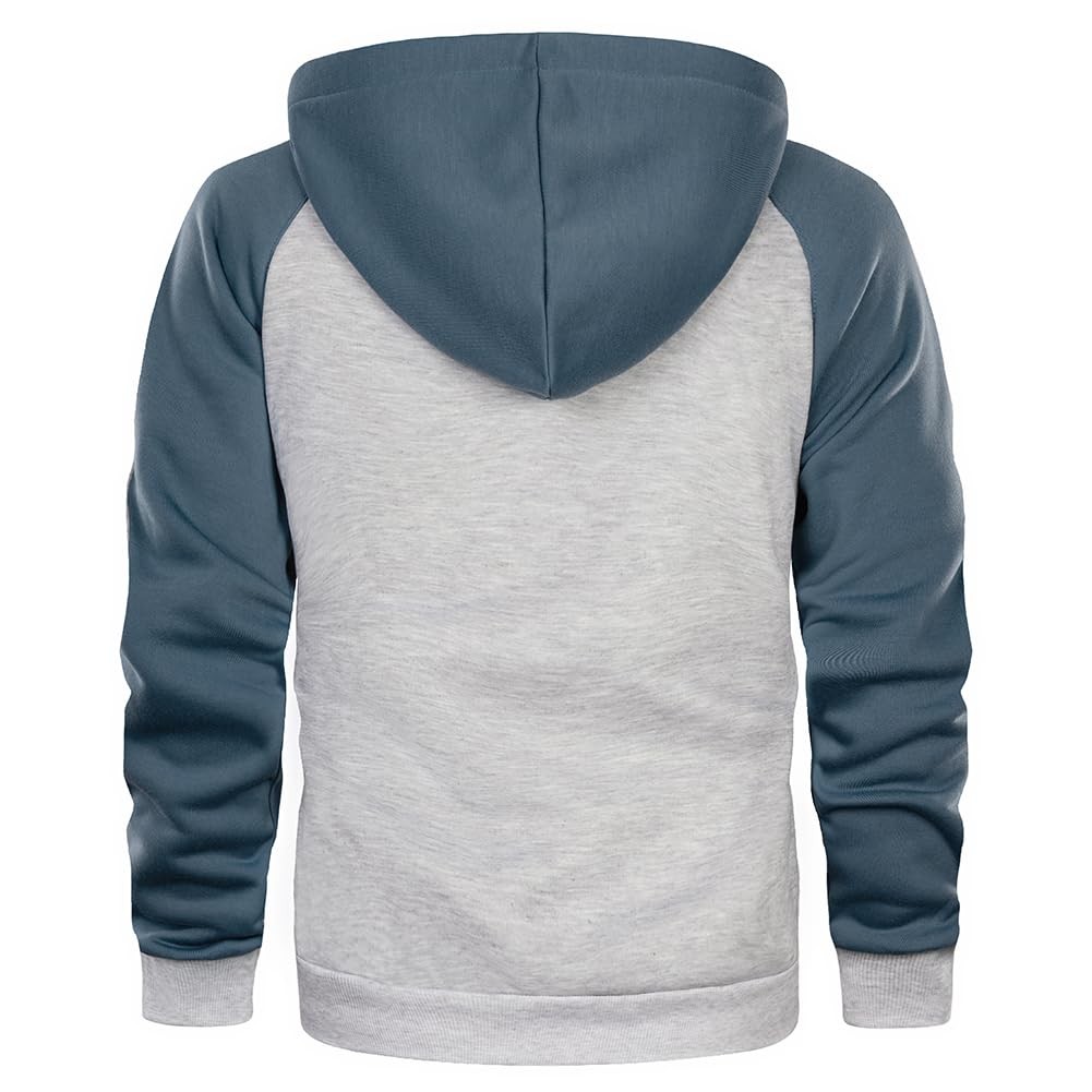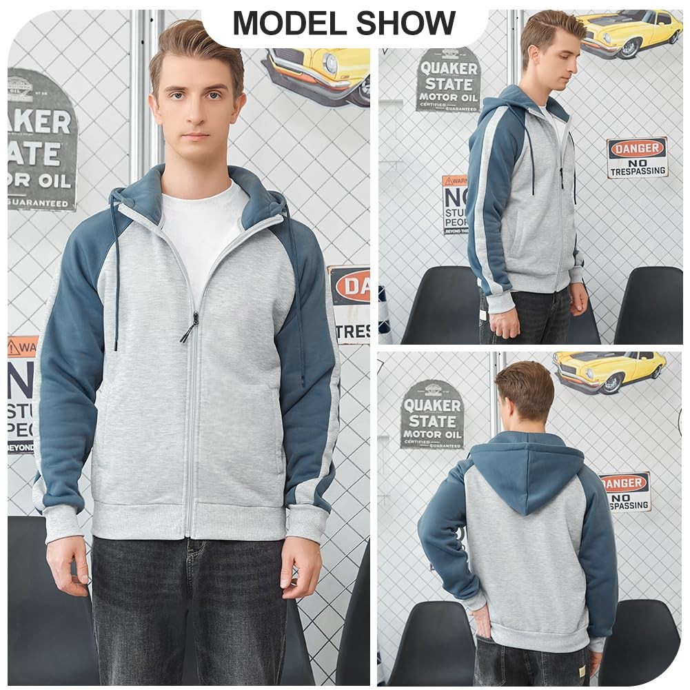 Mens Long Sleeve Hoodies Fleece Jackets Contrast Lightweight Sweatshirt Full ...