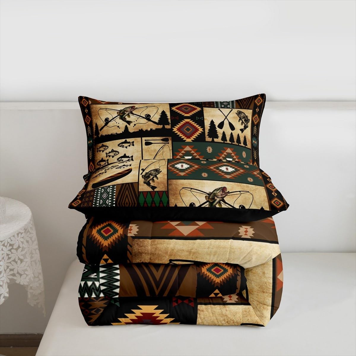 Fish Bedding Set Soft for Boys Girls, Cabin Comforter Set Twin Size Wildlife ...