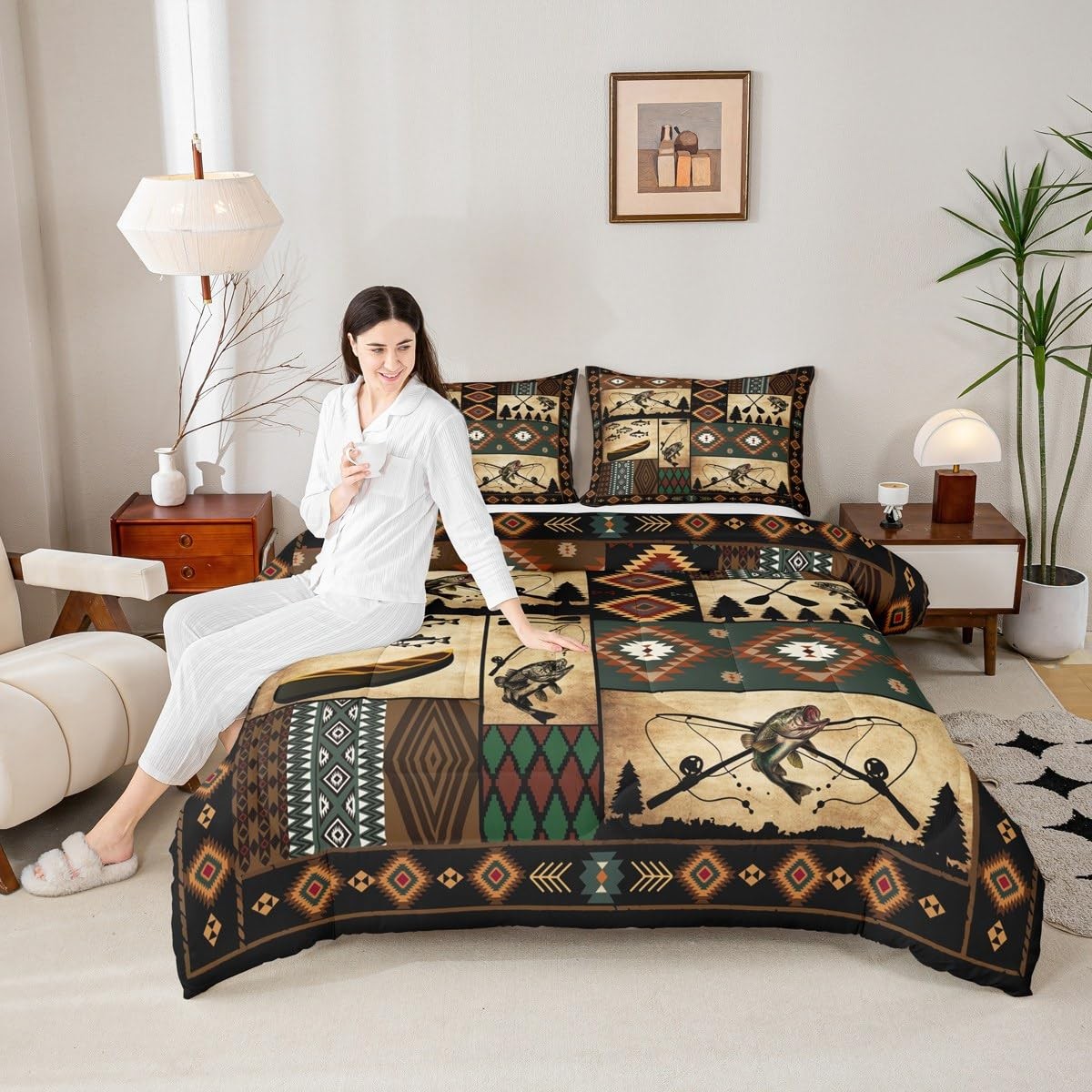 как выглядит Fish Bedding Set Soft for Boys Girls, Cabin Comforter Set Twin Size Wildlife ... фото