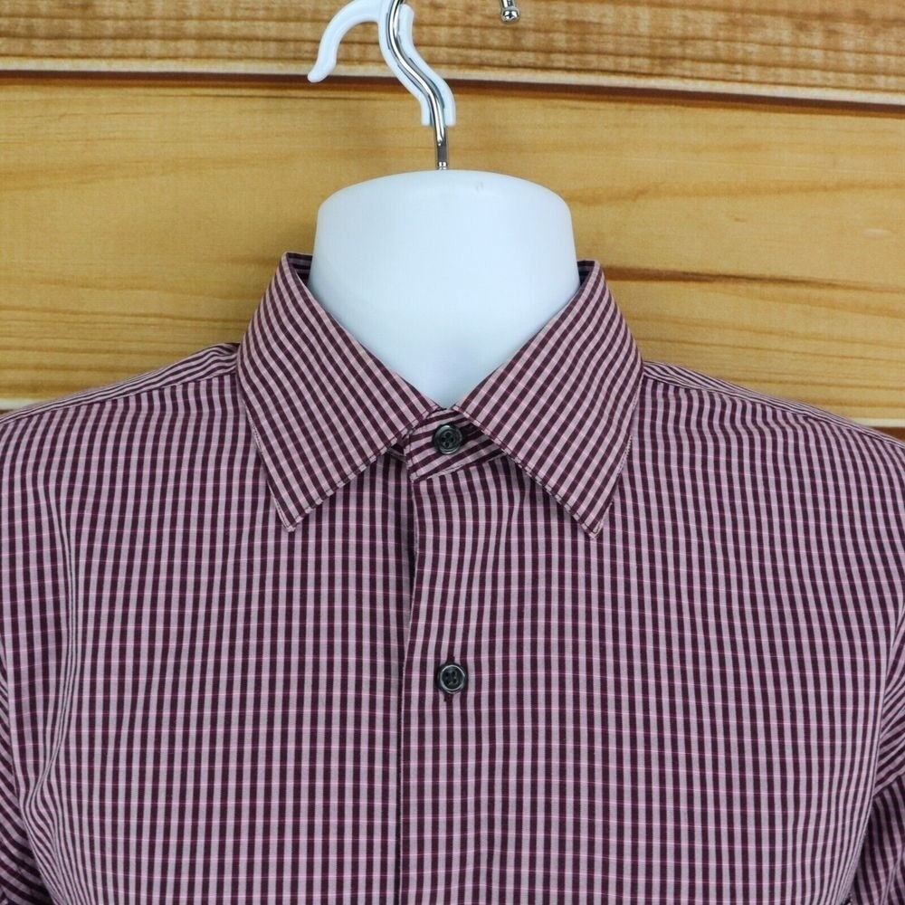 как выглядит Alfani Dress Shirt Easy Care Mens Sz L 16 Purple Checks Cotton Blend Long Sleeve фото