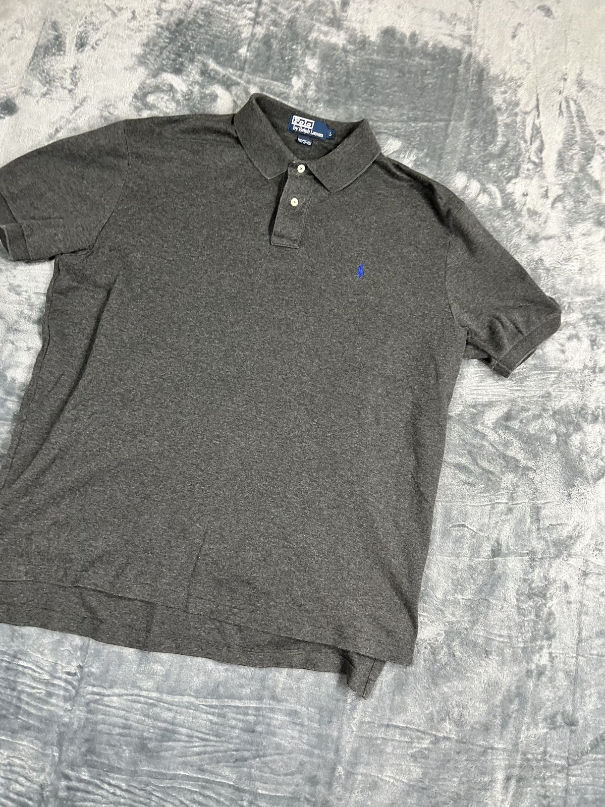 как выглядит Polo Ralph Lauren Mens Gray Short Sleeve Polo Shirt L 100 Cotton Classic Fit фото
