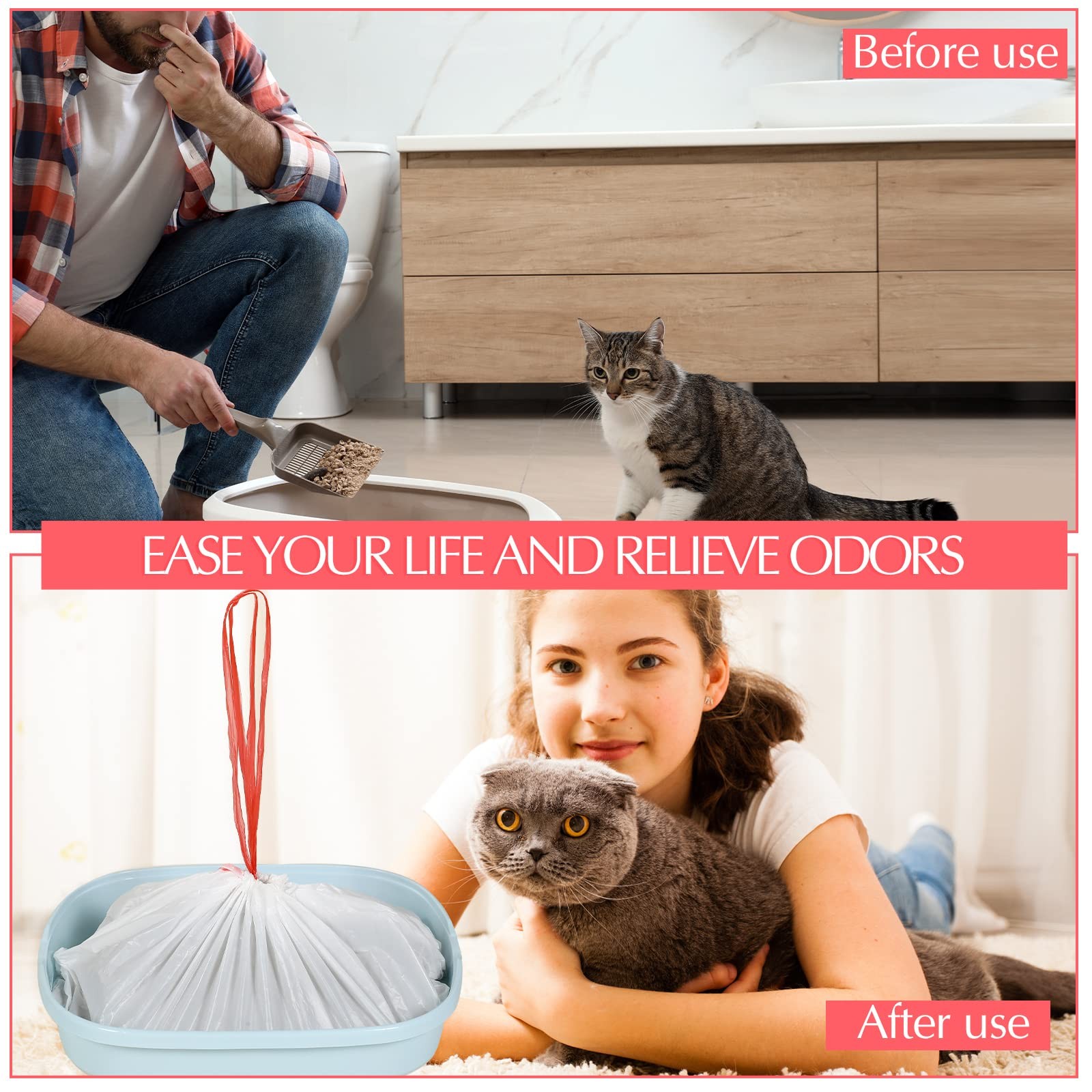56 Count Sifting Cat Litter Bags Jumbo Thick Box Liners with white