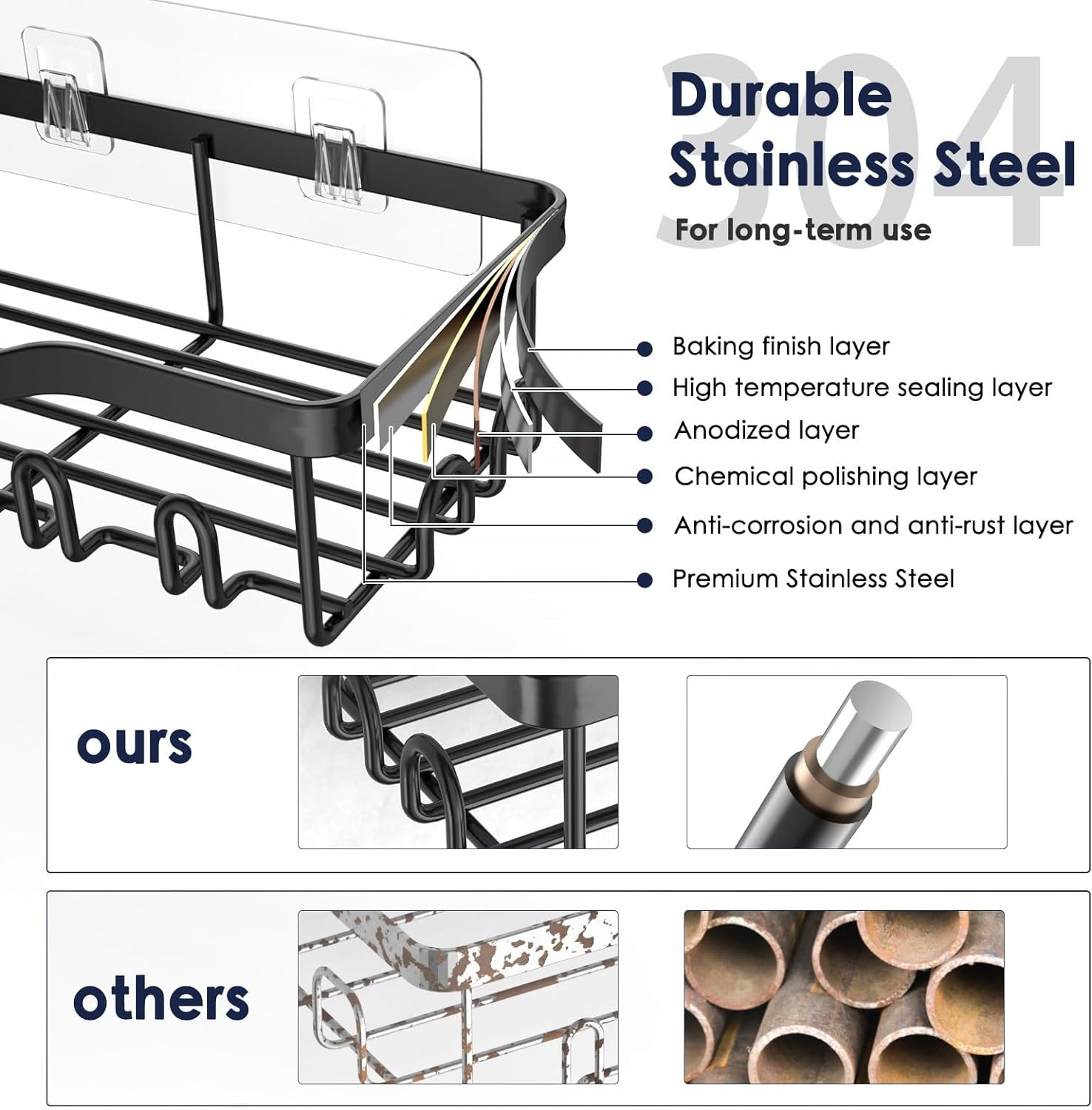 Shower Caddy Adhesive Shower Organizer 7-Pack, Bathroom Stainless Steel Shelves
