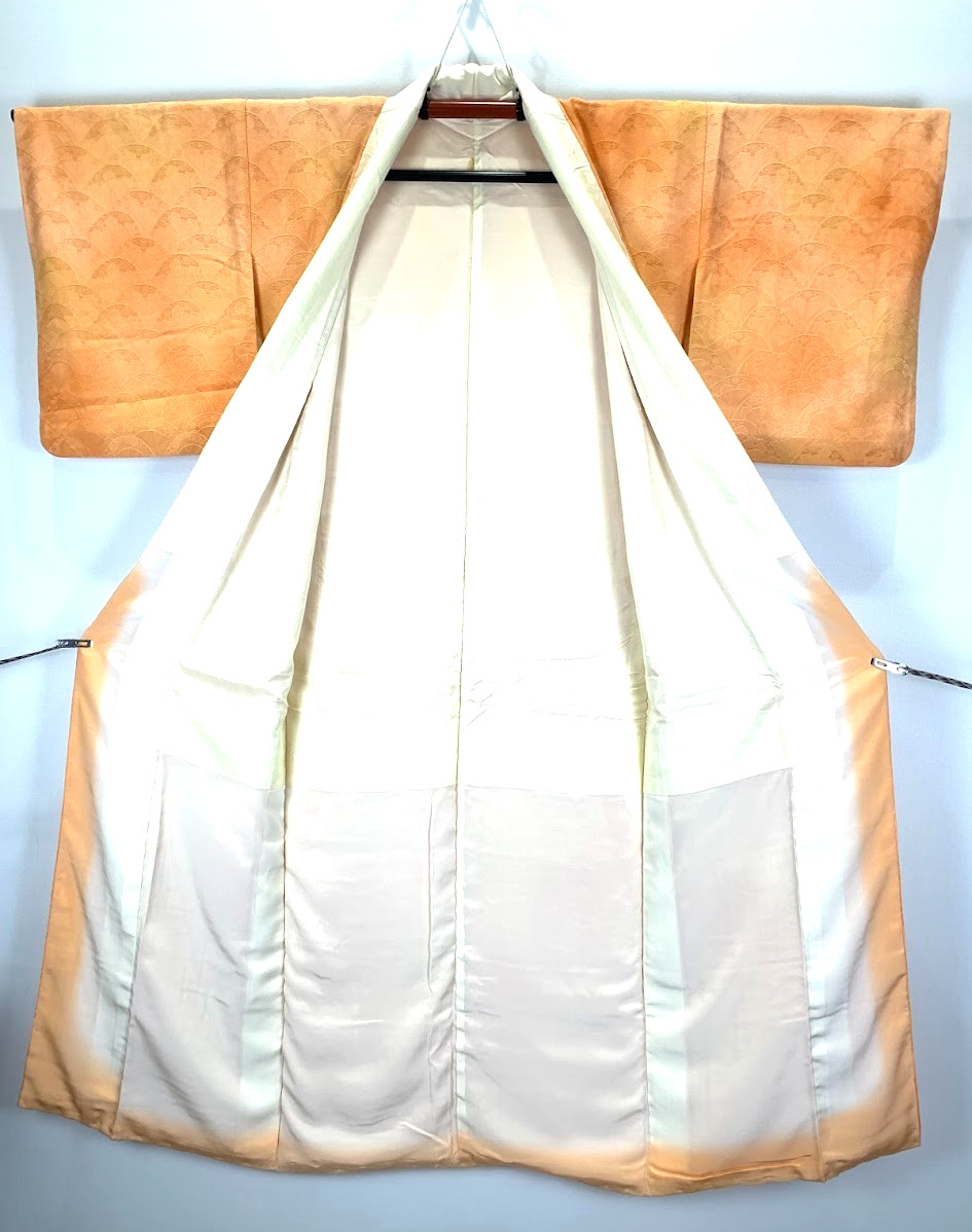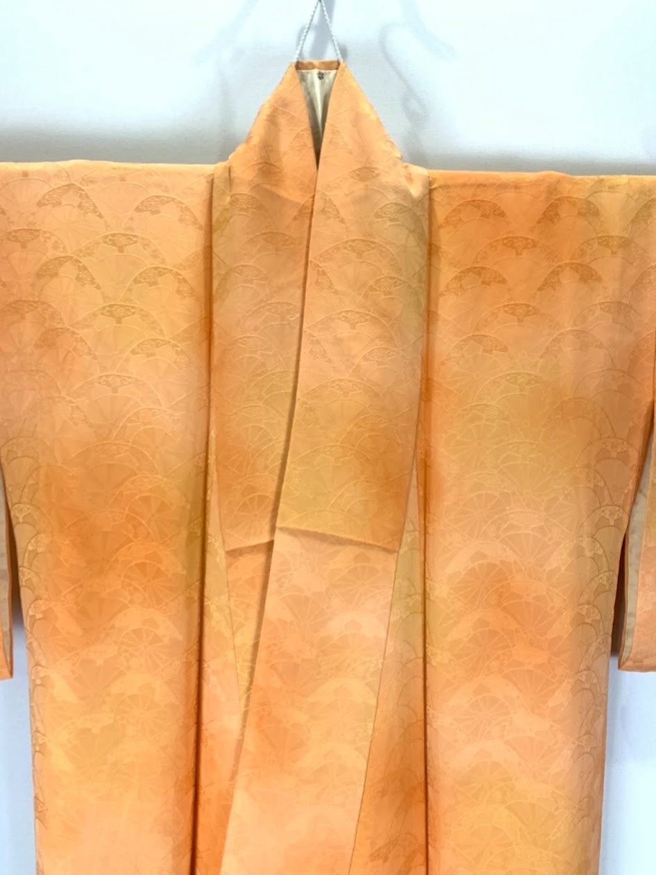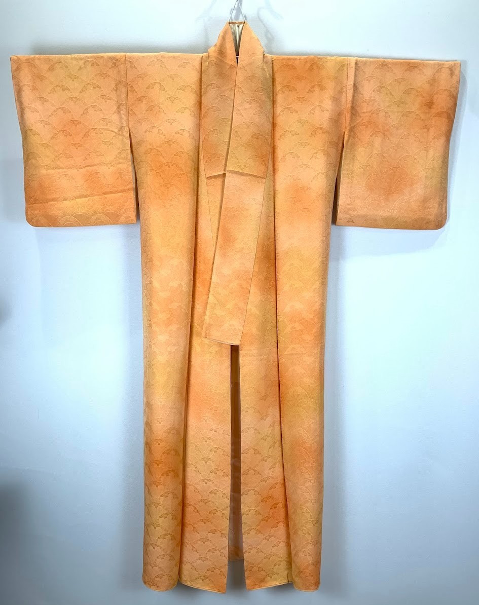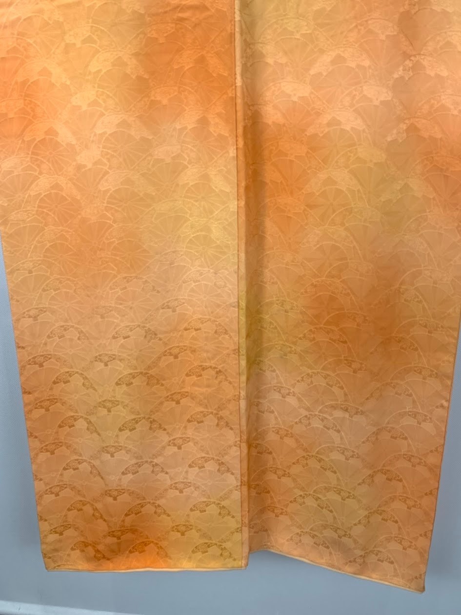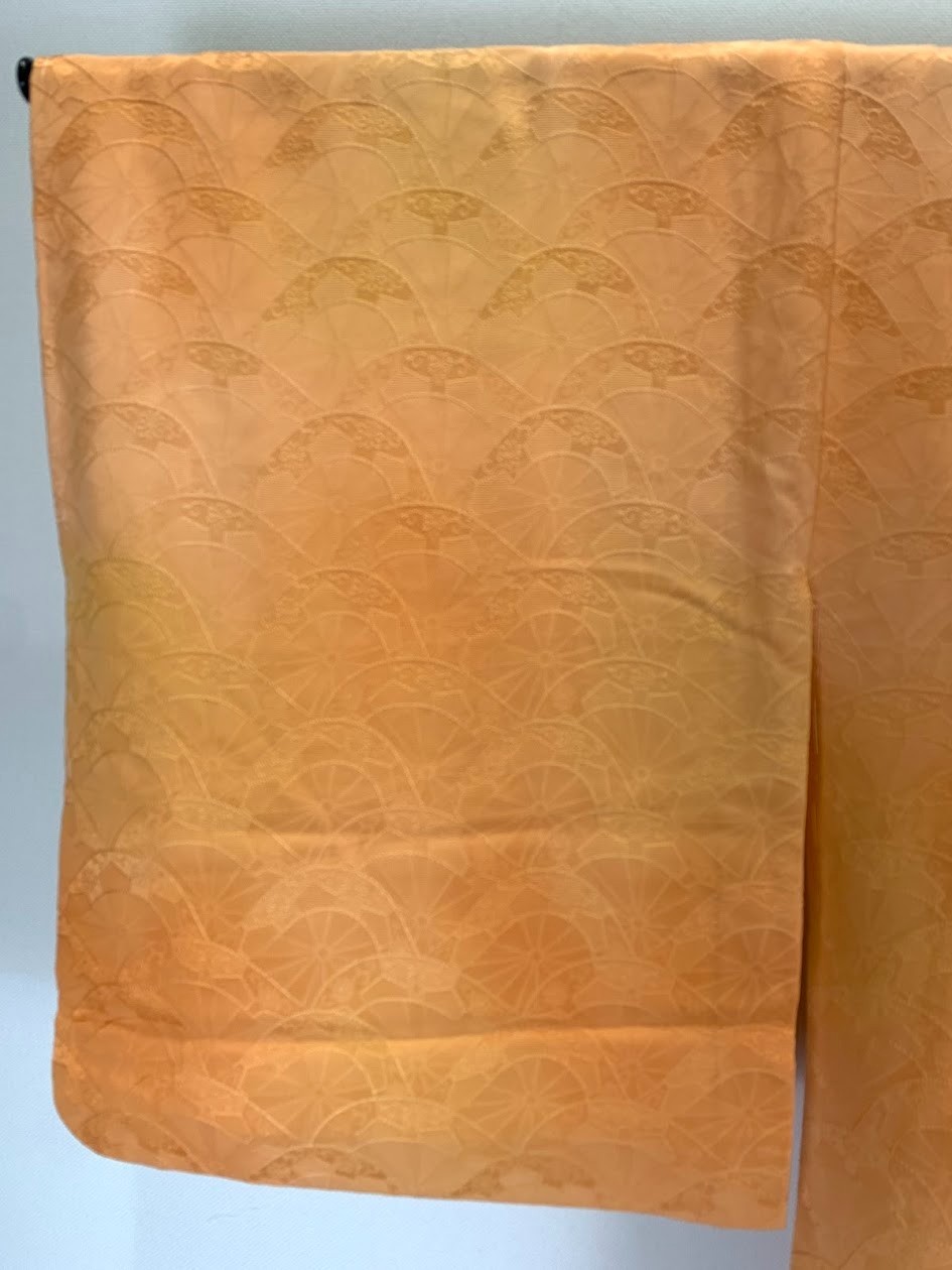 как выглядит Unused Silk Iromuji Kimono XS 58" / Orange Jimon Jacquard Pattern Solid Japan фото