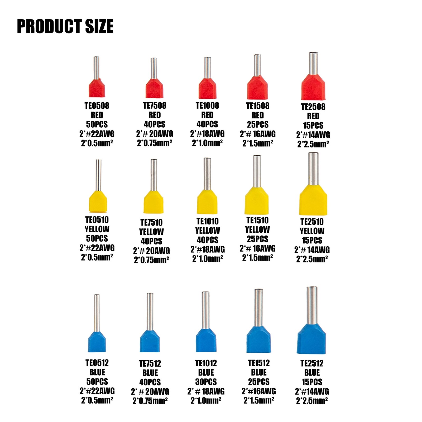 Formulation: 500Pcs Wire Ferrules AWG 14-22