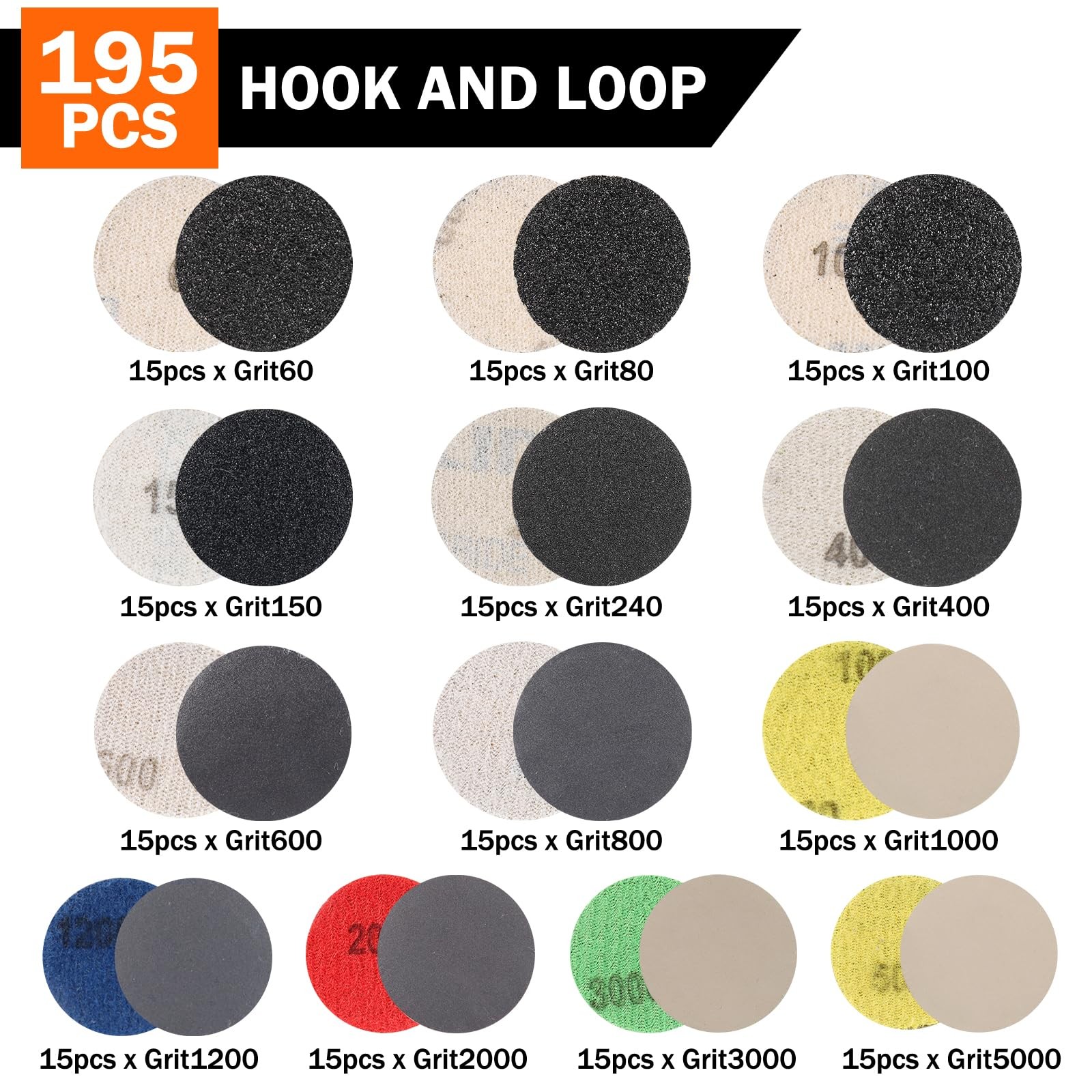 Formulation: 195 Pcs 1 Inch Hook and Loop Sanding Discs