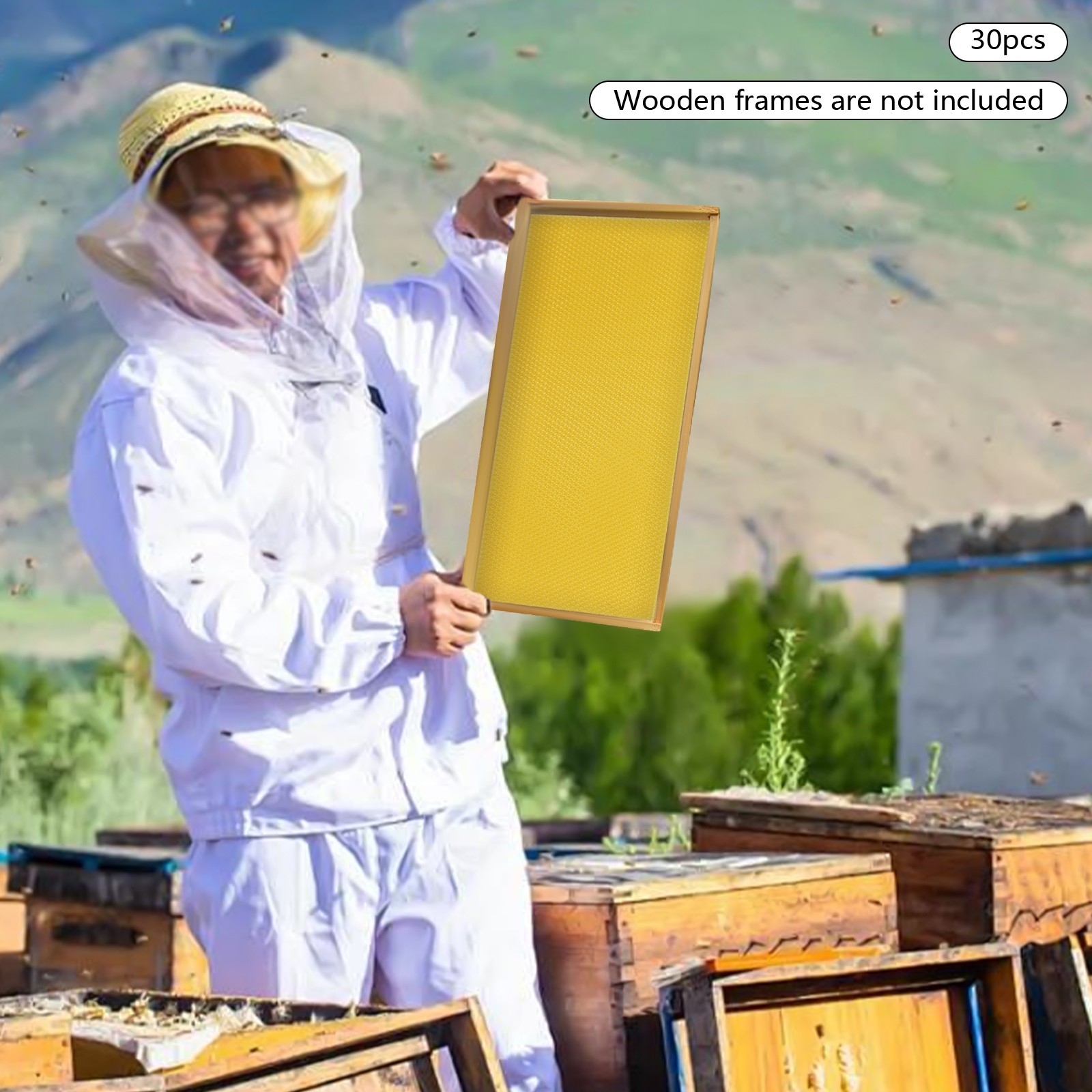 30 Honeycomb Sheets Bee Wax Foundation Beehive Frames for Beekeeping Brood Box