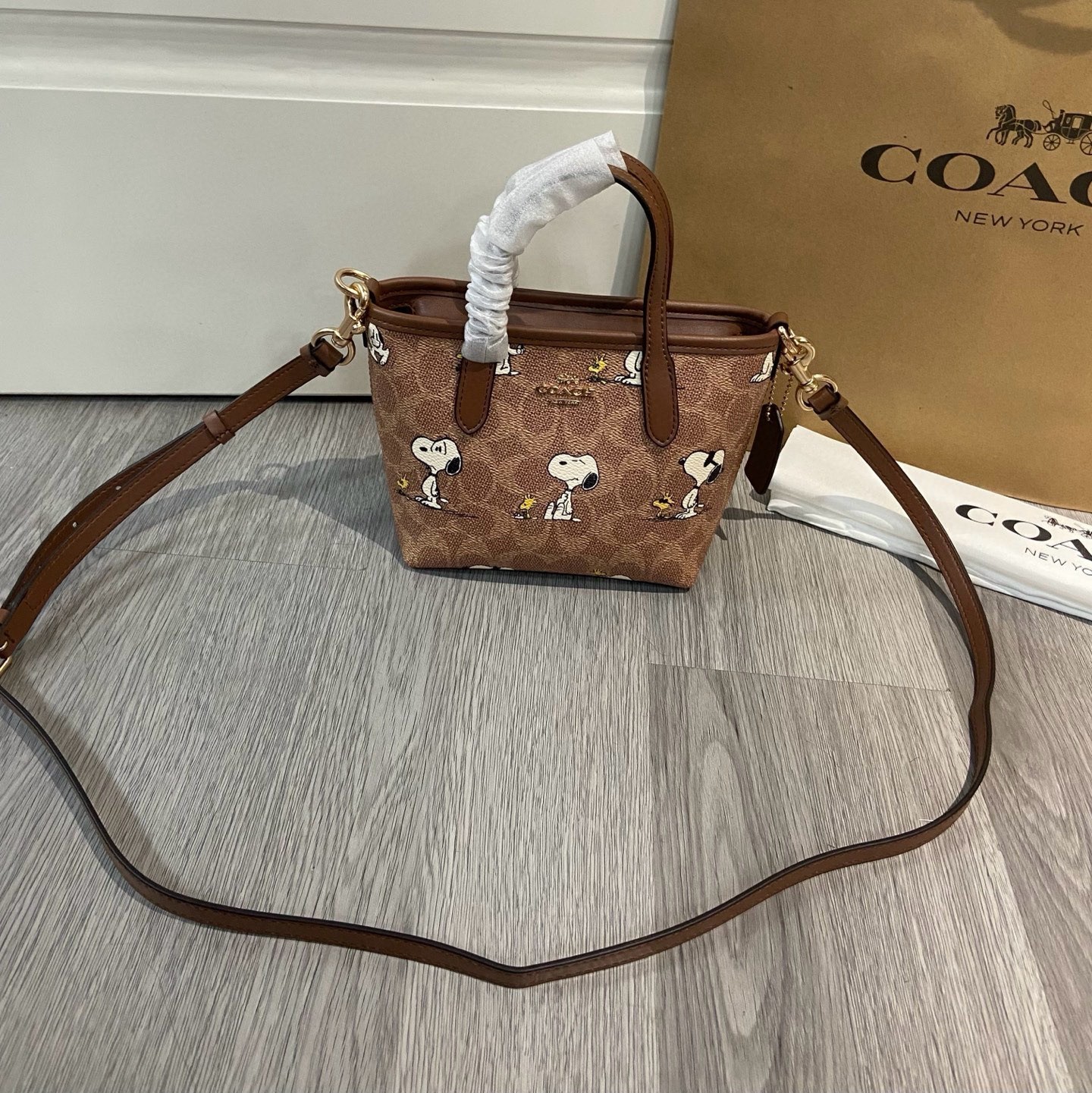 как выглядит NEW Coach X Peanuts City Mini Tote BagSignature Canvas Snoopy Print CBS83 Outlet фото