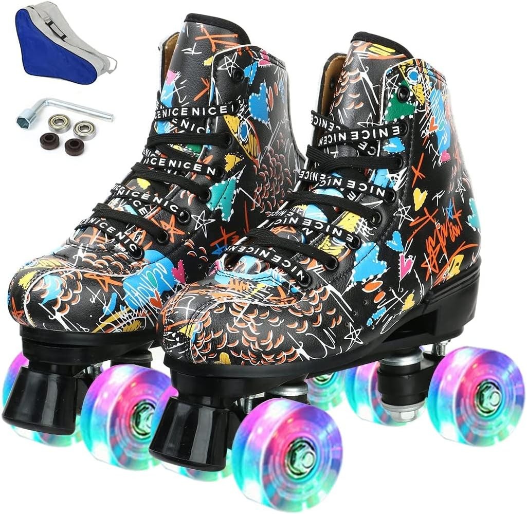 Roller Skates Women Men Cowhide High-Top Shoes Classic Double-Row Roller Skate