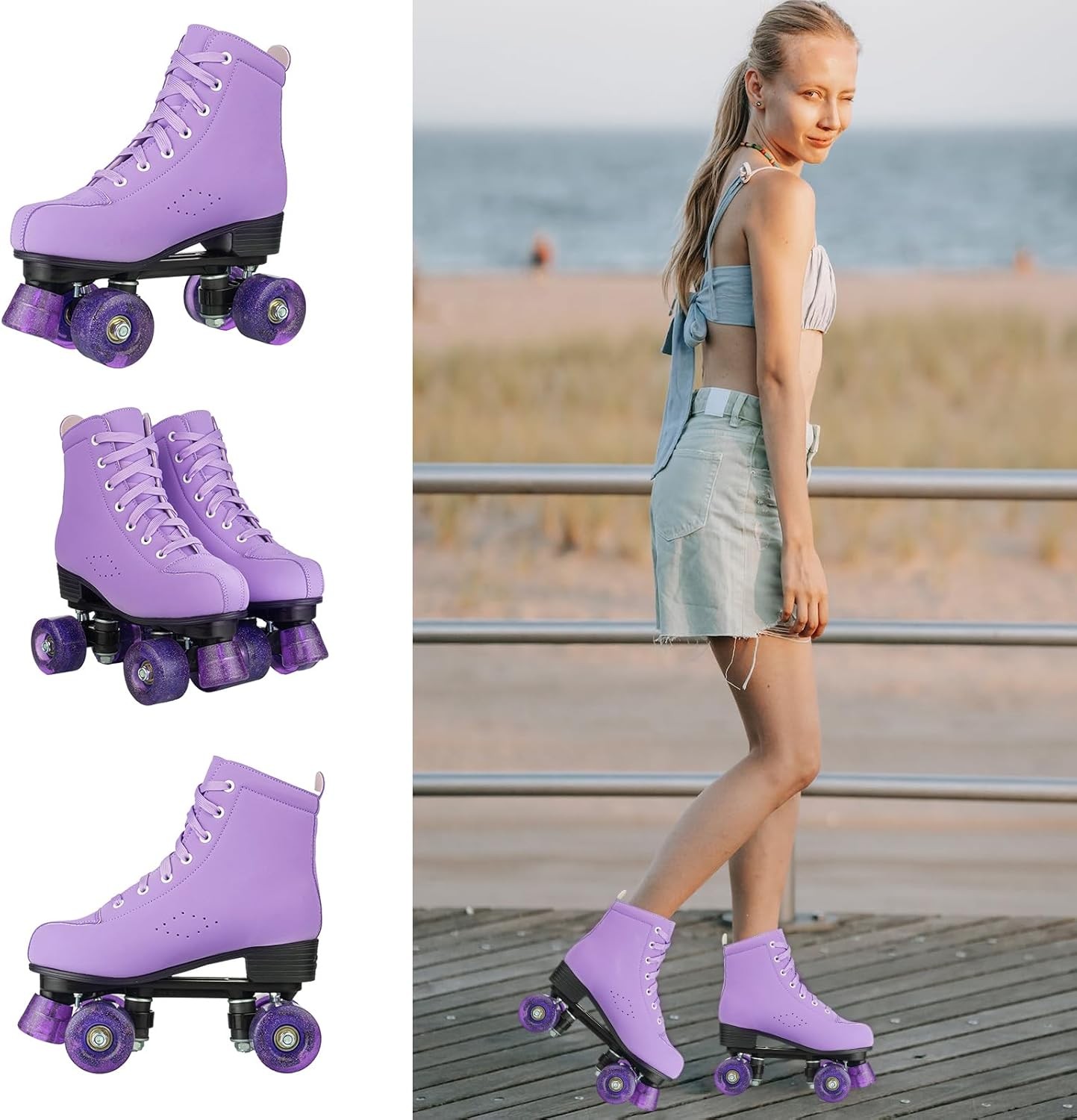 Roller Skates Women Girls High Top Shoes Men Double Row Shiny Four Wheel Unisex
