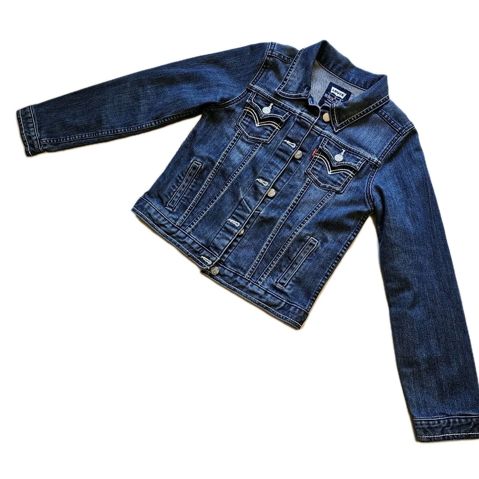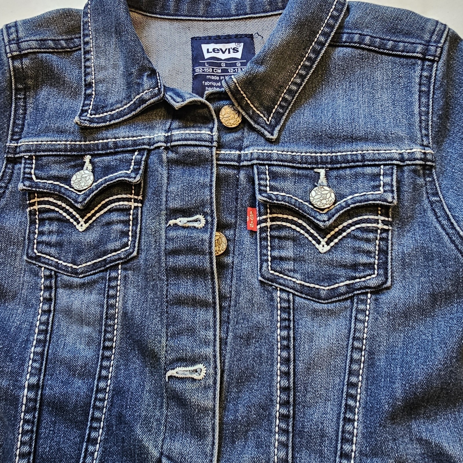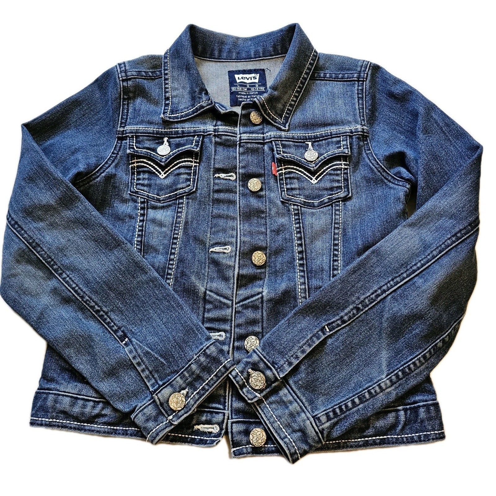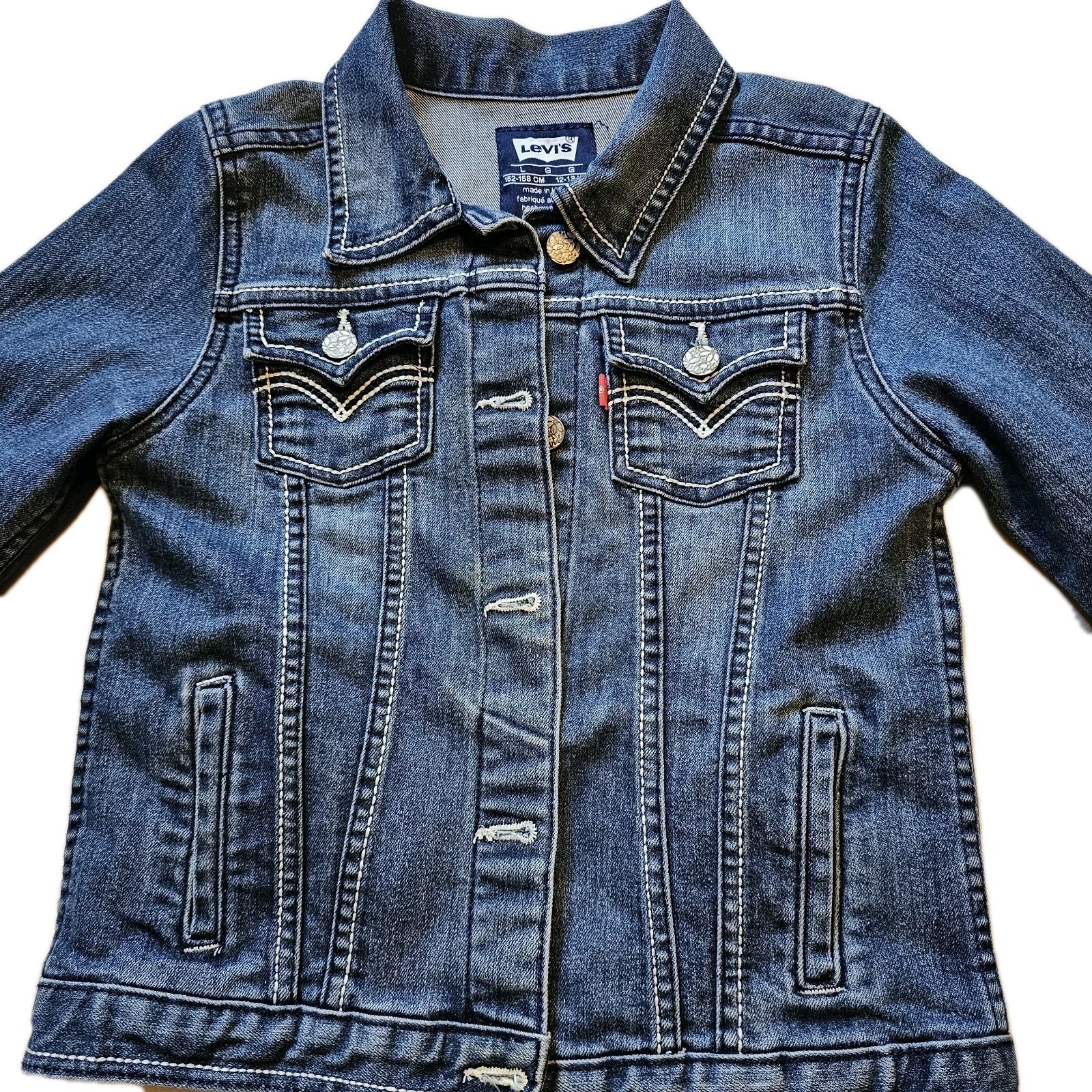 как выглядит Levis Kids Denim Jacket Girls Blue Trucker Style Button Front Size L 12-13 Yrs фото