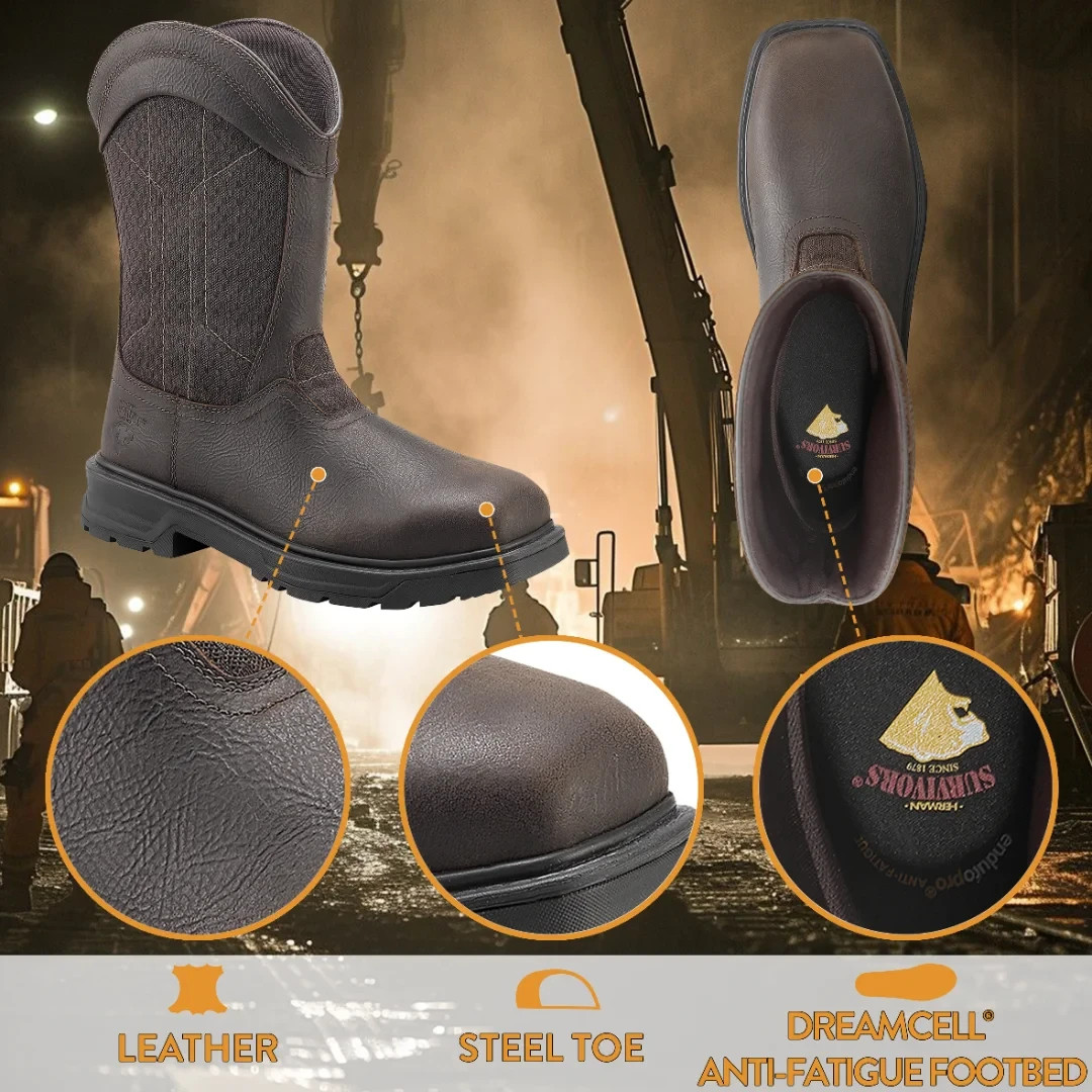 Men's HERMAN SURVIVORS Leather Granite Pull-On Steel Toe Work Boots - 13 NEW