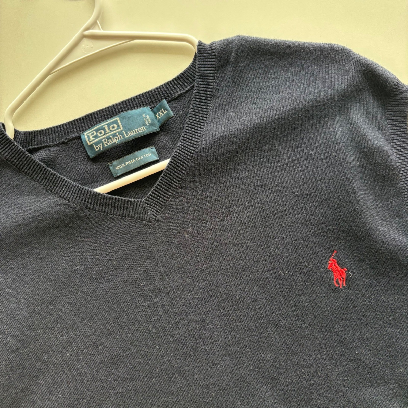 VTG Polo Ralph Lauren Navy Blue Cotton V-Neck Sweater Vest XXL Red Pony Logo