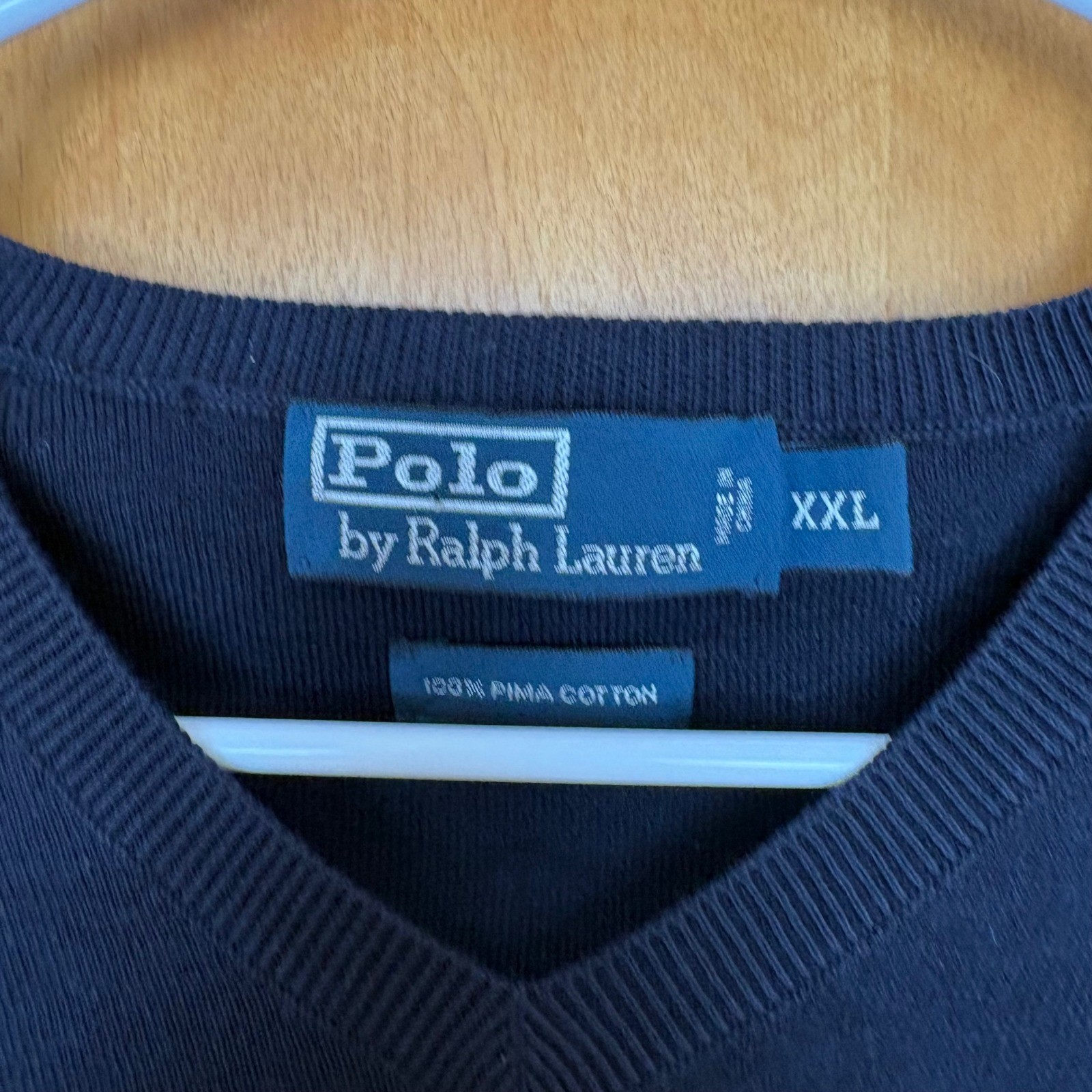 как выглядит VTG Polo Ralph Lauren Navy Blue Cotton V-Neck Sweater Vest XXL Red Pony Logo фото