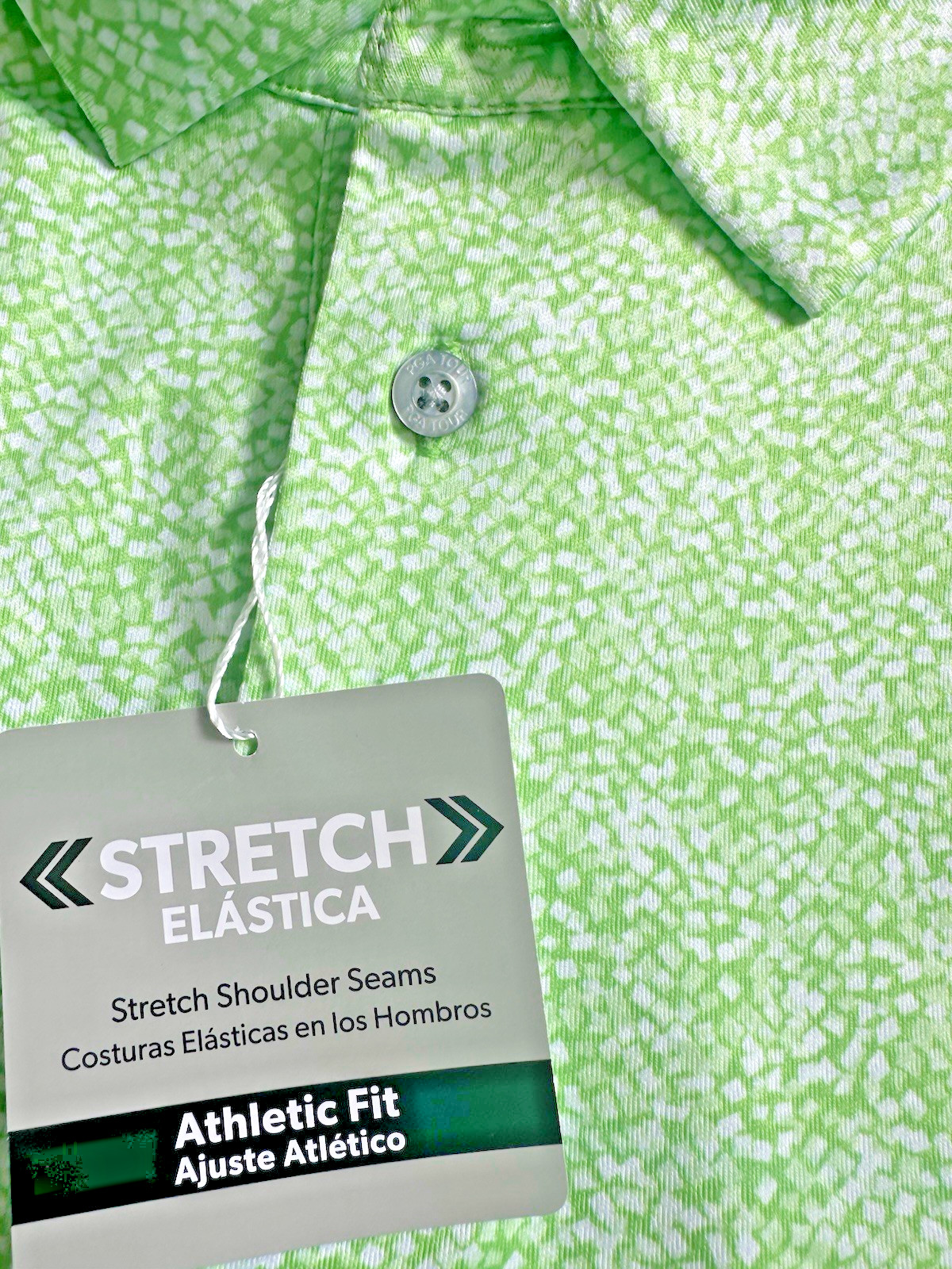 PGA TOUR Men's Printed Short Sleeve Textured Performance Polo Shirt Green XL