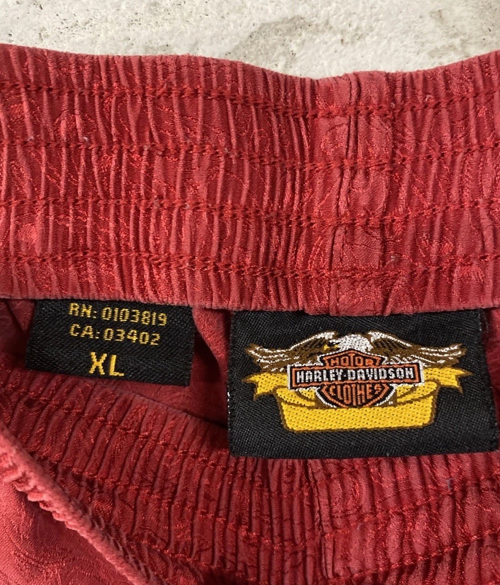 VTG 90s Y2K HARLEY DAVIDSON 100 Silk Red Men s Women s Boxer Lounge Shorts XL