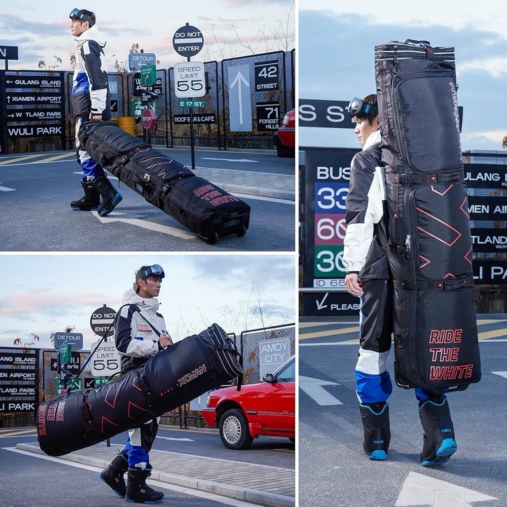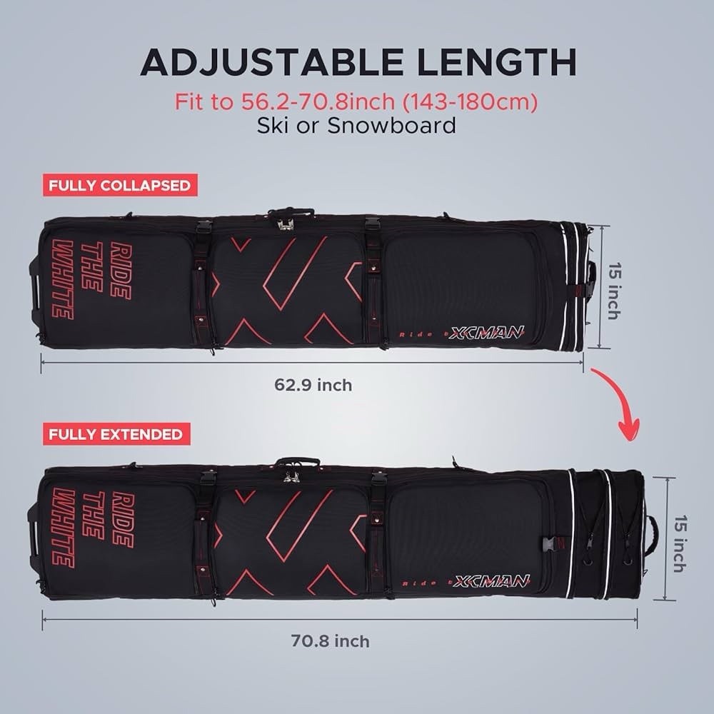 Padded Snowboard Bag with Wheels- Snow Ski Bags for Air Travel Black