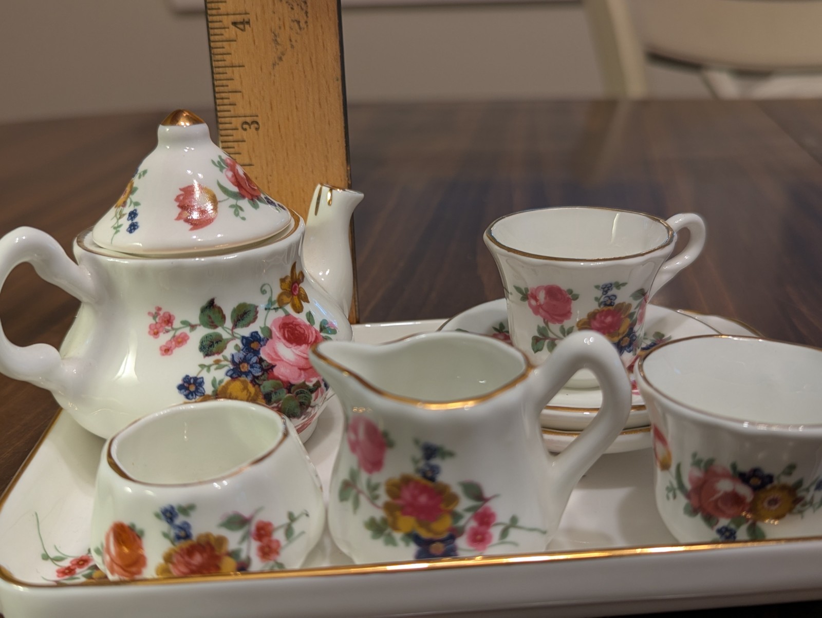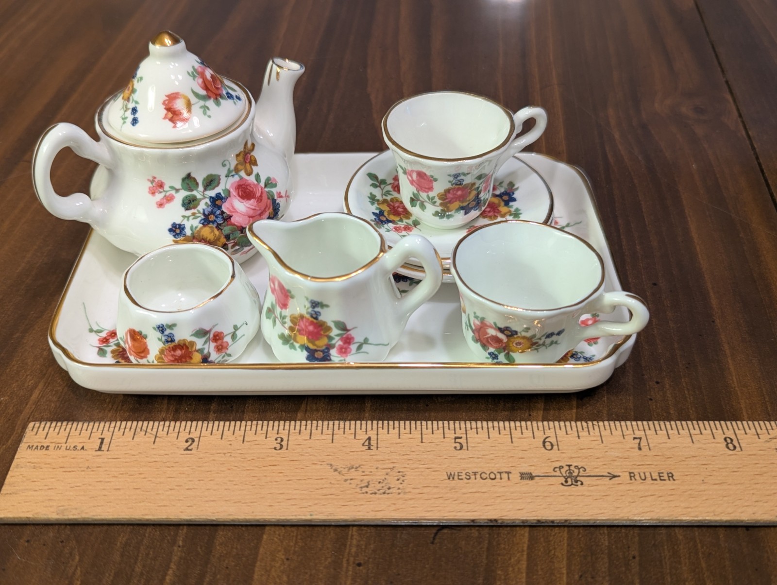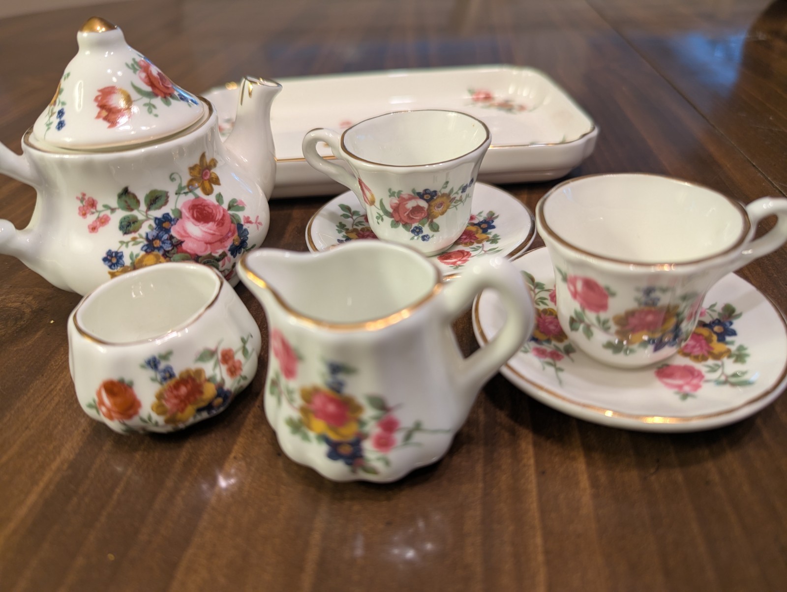 • Miniature Rose Violet Tea Set Fine Bone China Made in England 10 piece Vtg