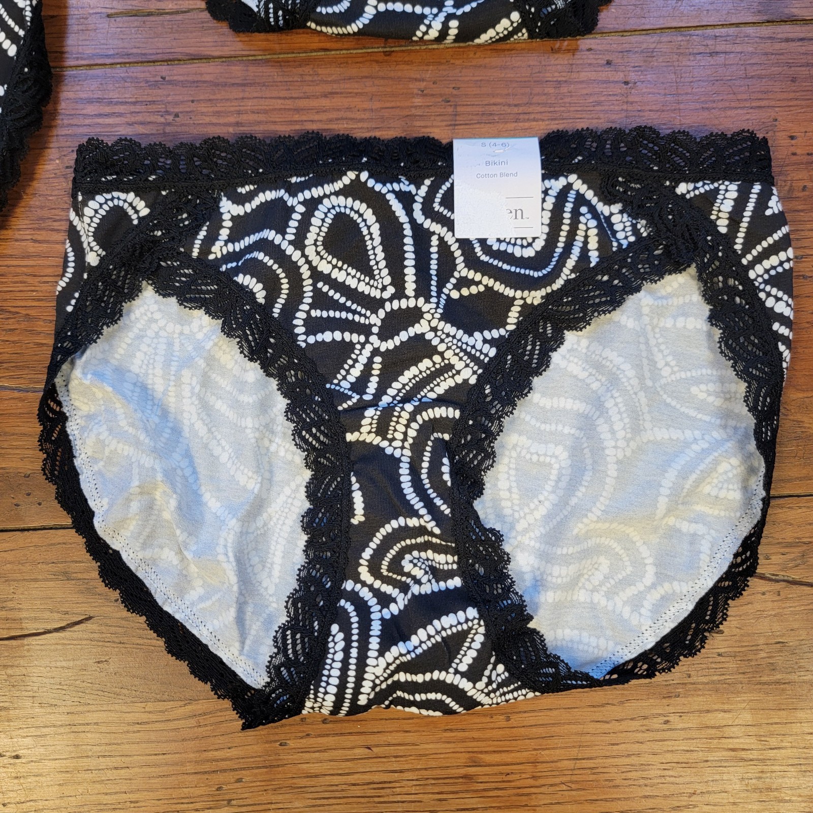3 Auden Womens Small 4-6 Cotton Bikini Underwear Target Black White Lace S