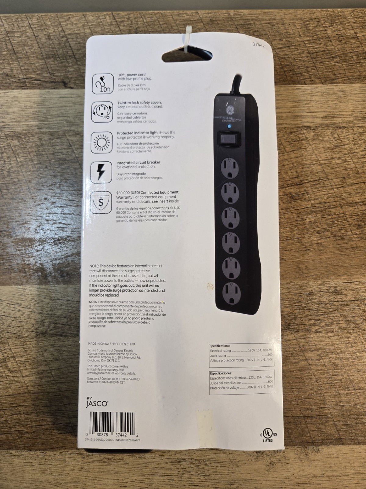 как выглядит GE 6-Outlet Surge Protector, 10 Ft Extension Cord, Power Strip, 600 Joules Black фото