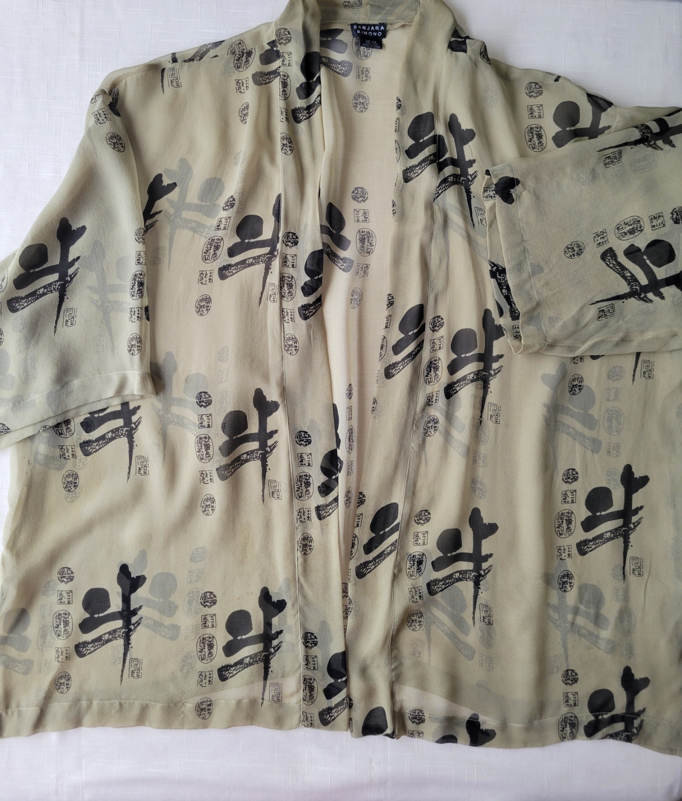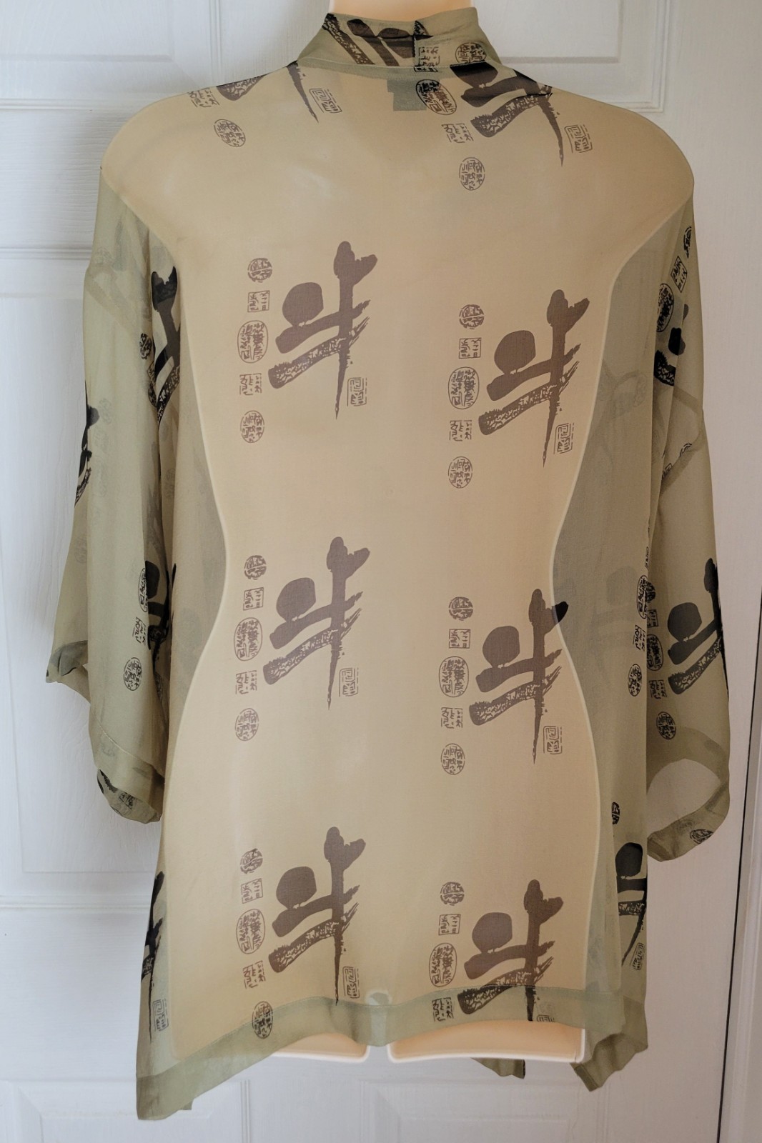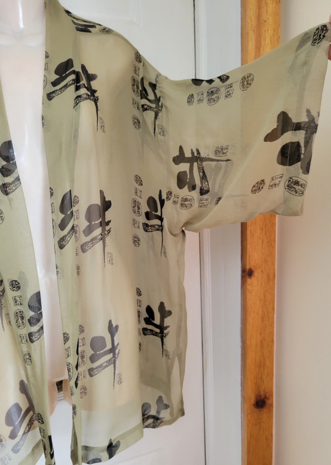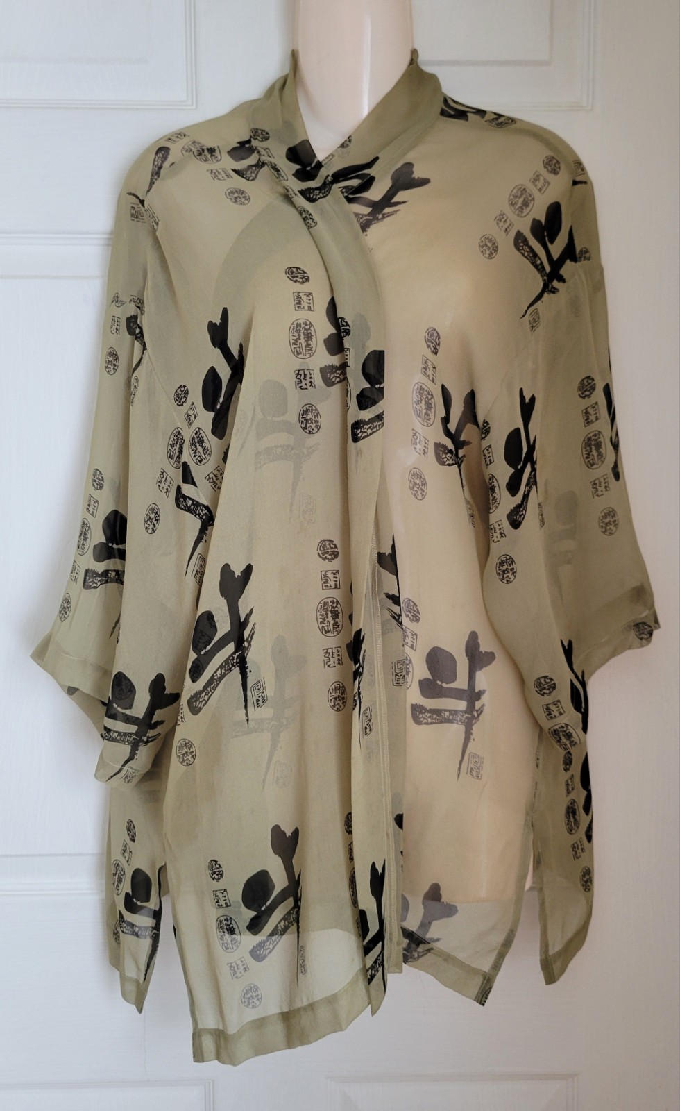 как выглядит Vintage 80s Banjara Kimono 100 Silk Green Asian Geisha Topper One Size Fits All фото