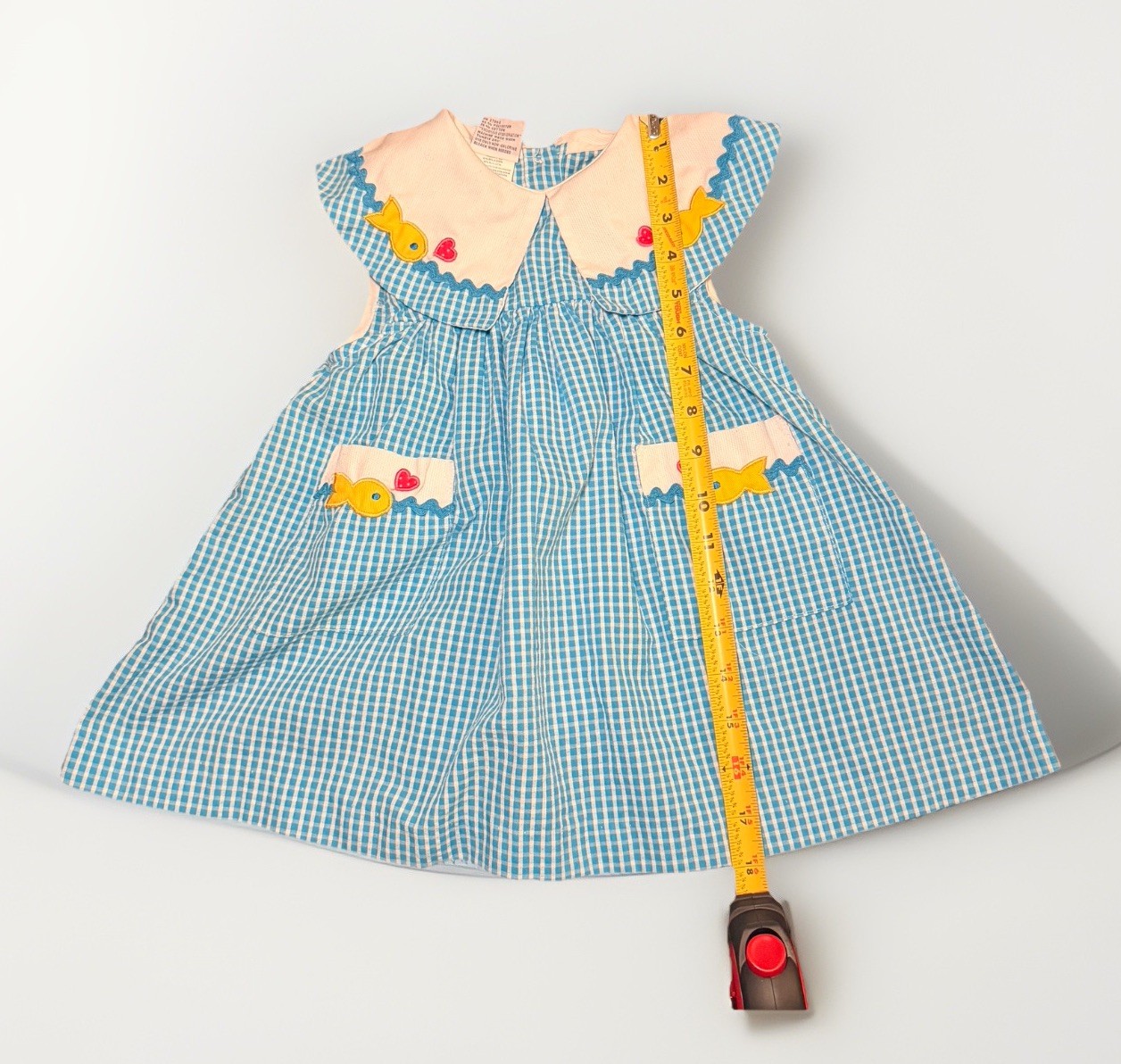 как выглядит Vtg Girls Samara 4T Fish And Hearts Plaid Bib Dress фото