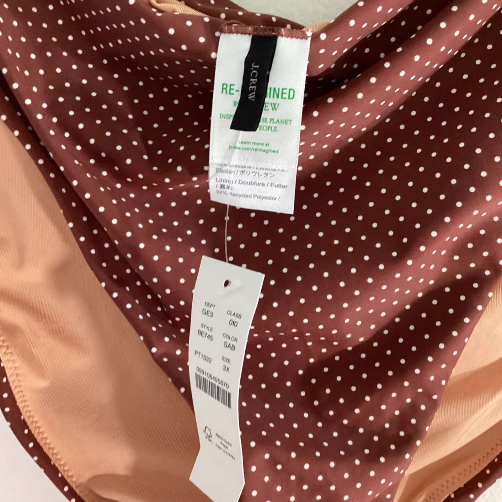 как выглядит NEW J.CREW RE-IMAGINED SZ 3X BIKINI BROWN WHITE POLKA DOT SWIM BOTTOM HIGH RISE фото