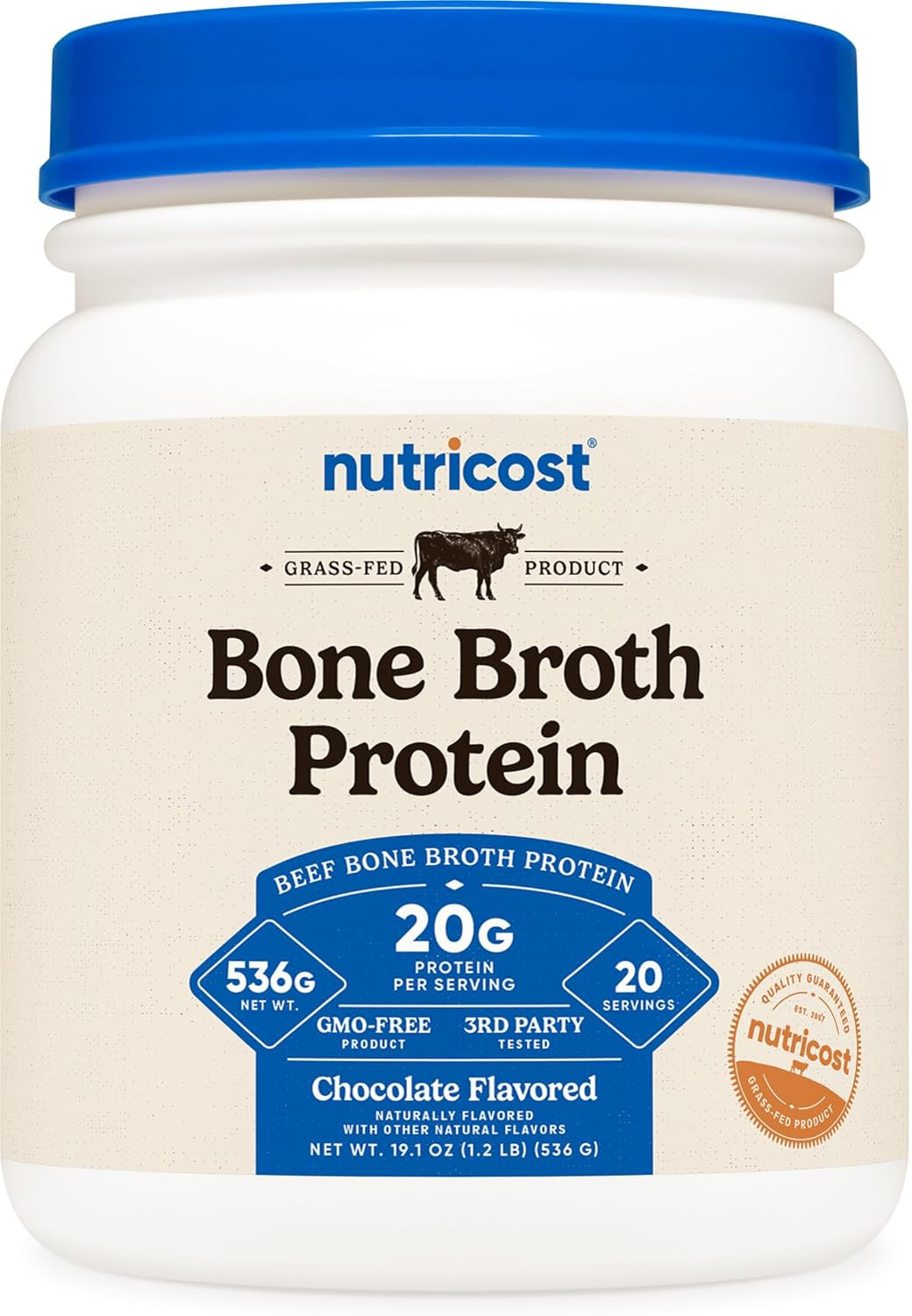 Beef Bone Broth Protein Powder Chocolate 20 Servings - Gluten-Free, Gmo-Free