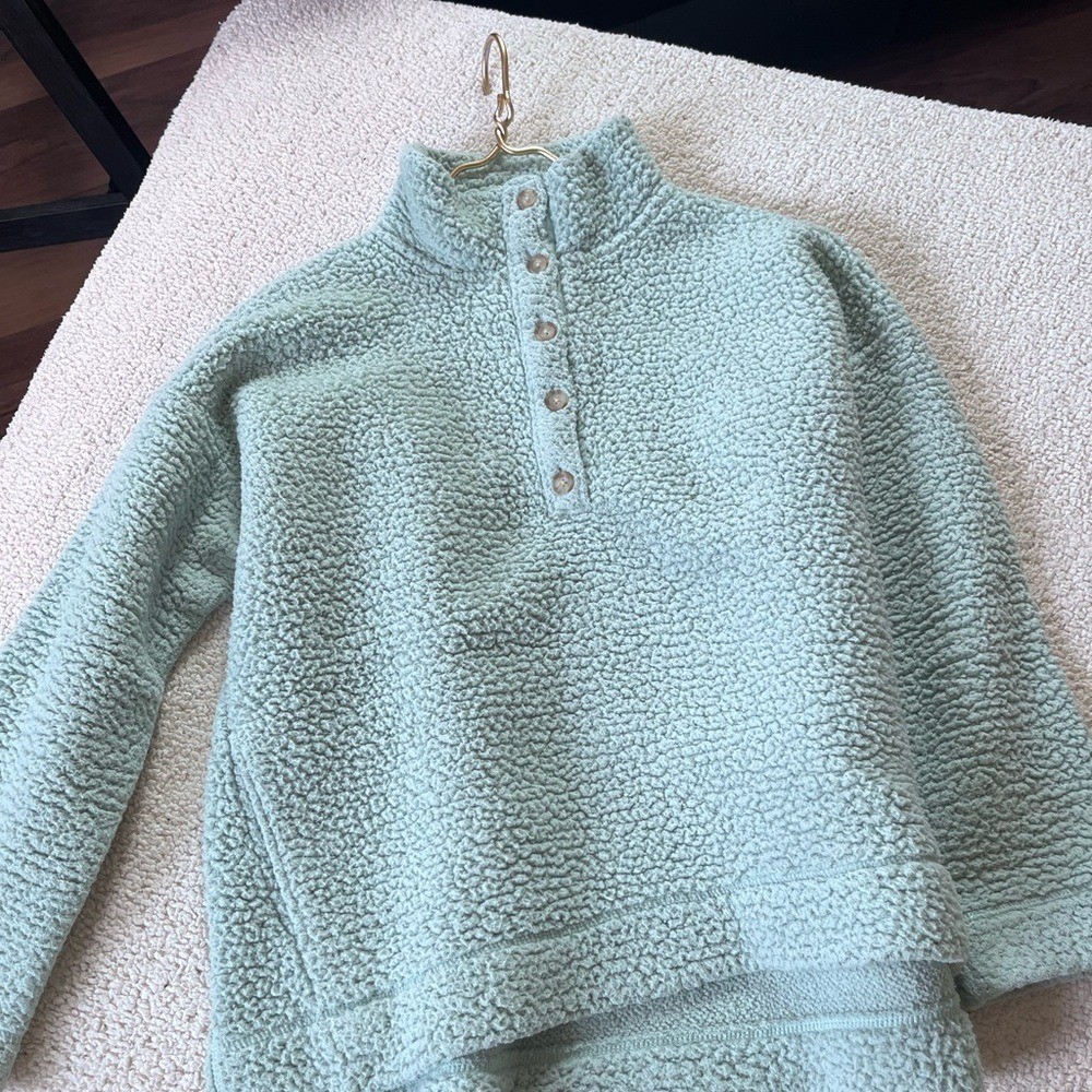 как выглядит Aerie Light Blue Teddy Jacket size small oversized cozy pastel S фото