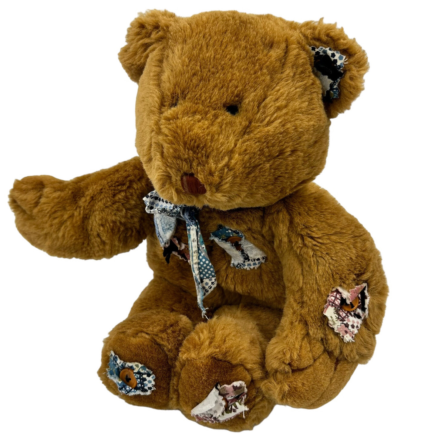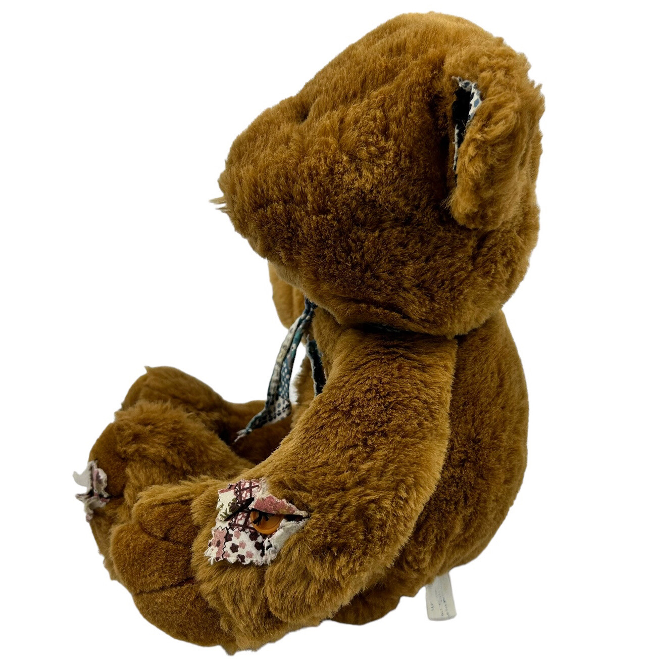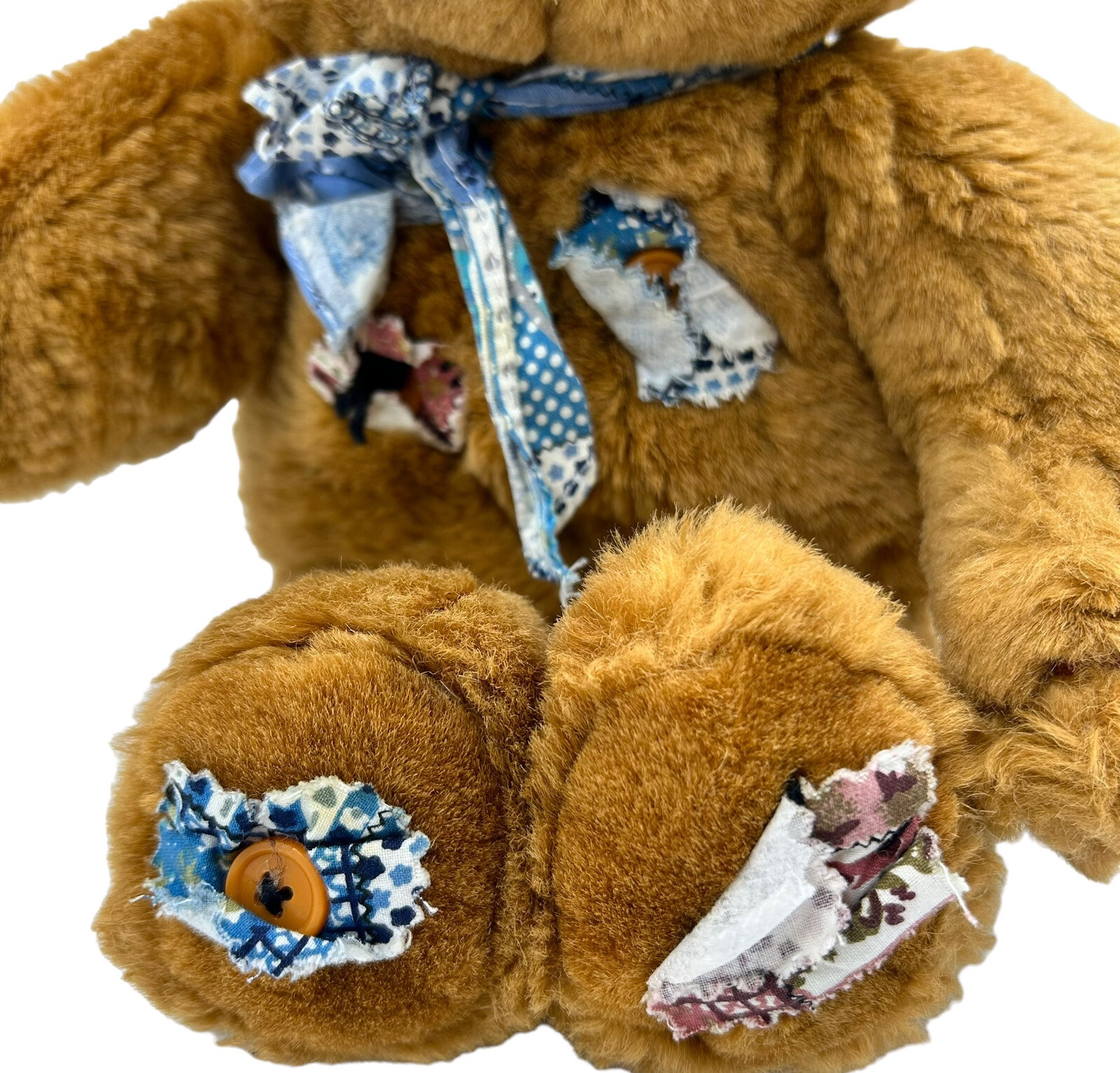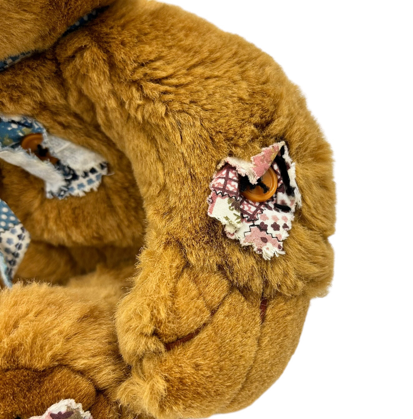 • Vintage Brown Teddy Bear Stuffed Plush with Button Patches Country Cottagecore