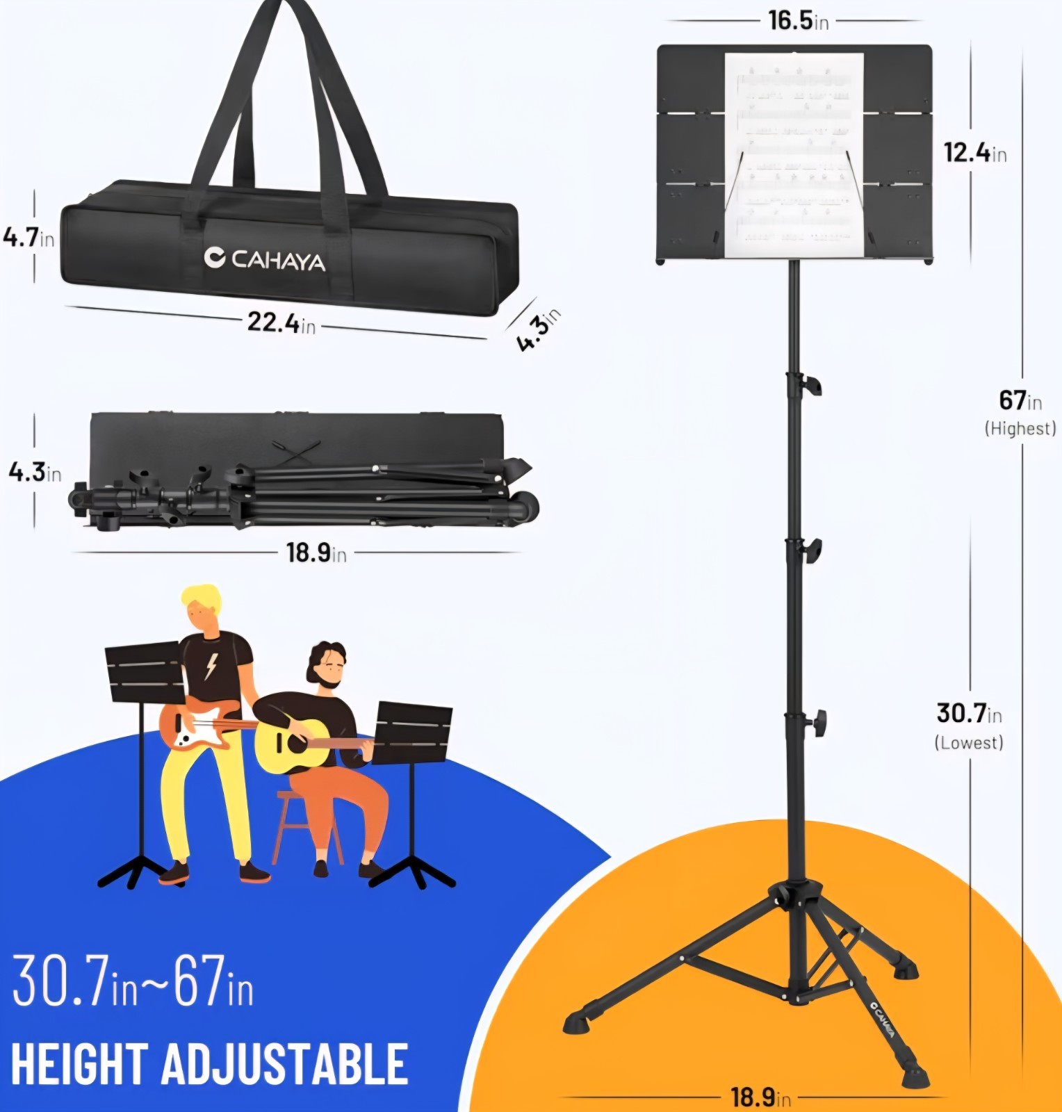 CAHAYA Sheet Music Stand Foldable: Music Stands with Tri-fold Panel Height...